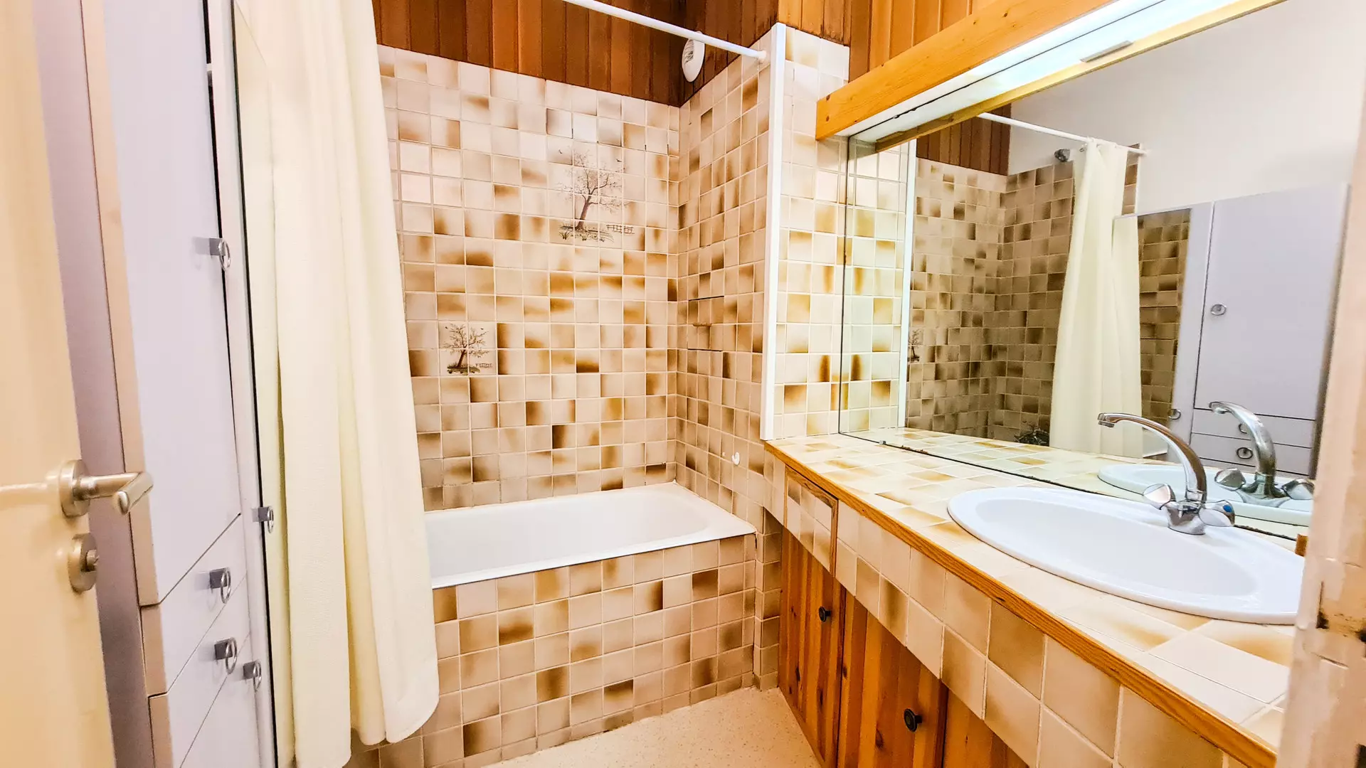 - Salle de bain avec baignoire et lave-linge