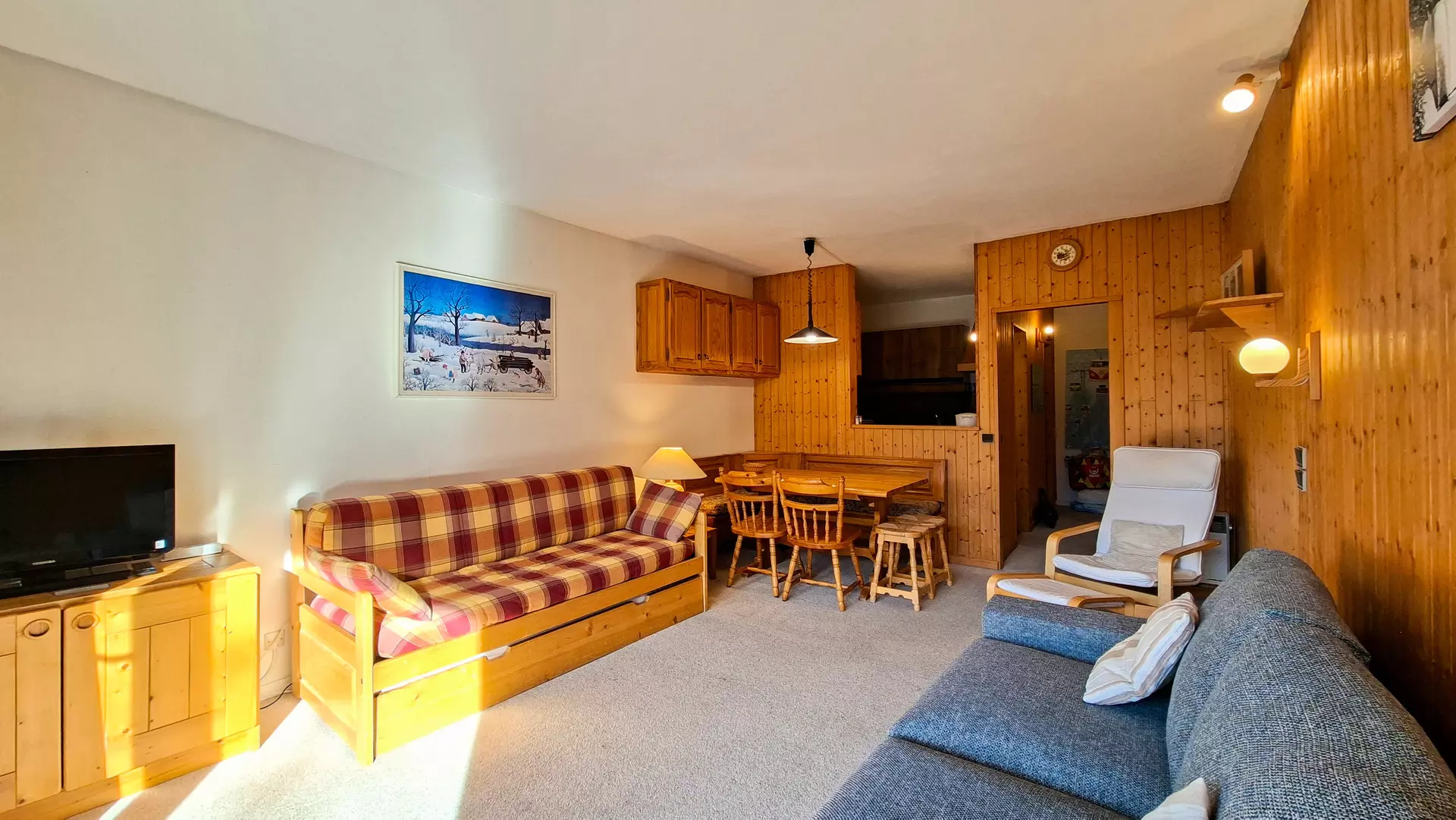 - Séjour: 1 canapé lit 2 places et 1 banquette lit 1 personne avec lit gigogne