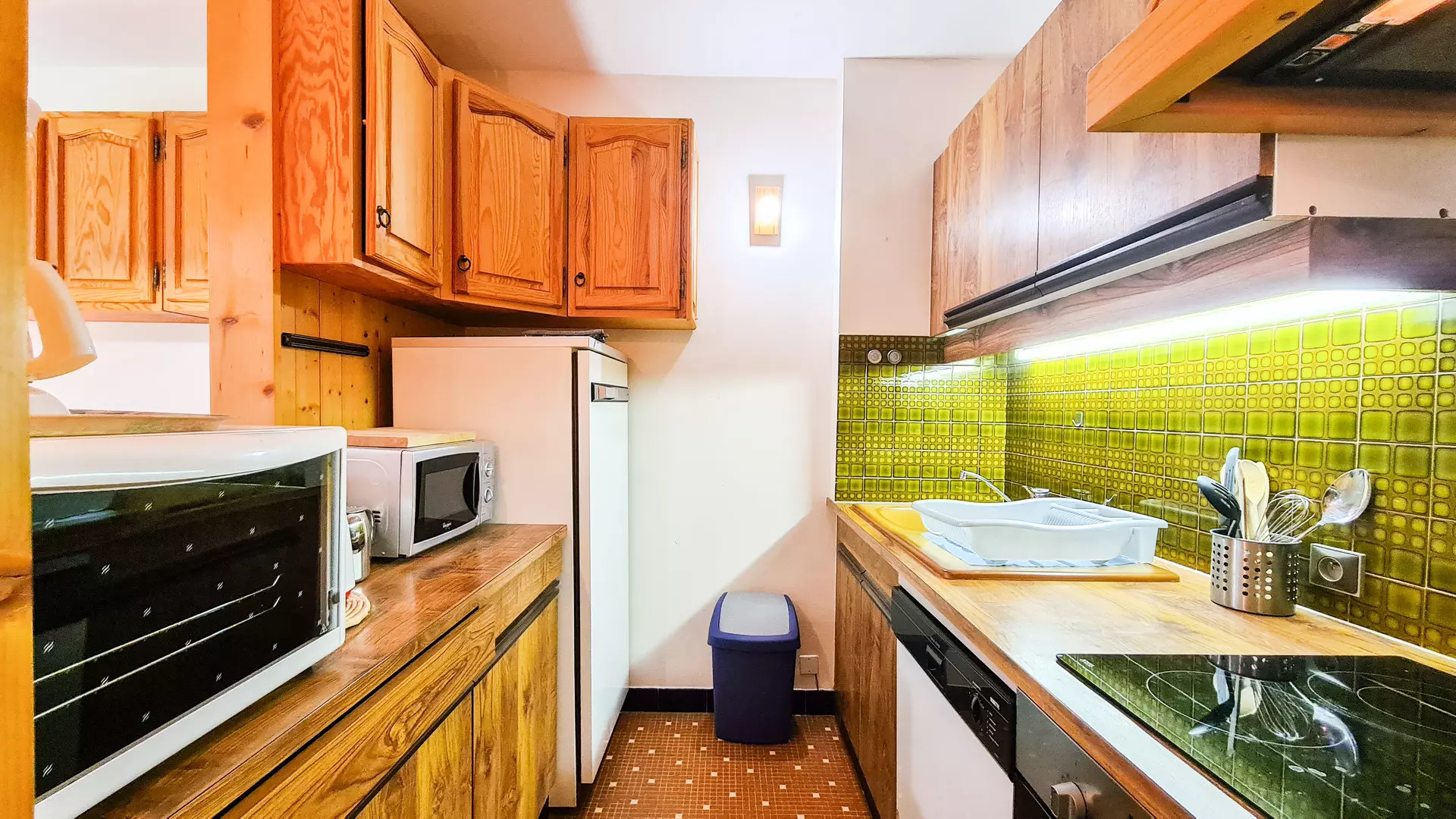 - Kitchenette avec plaques vitrocéramiques, lave vaisselle, four, micro-onde