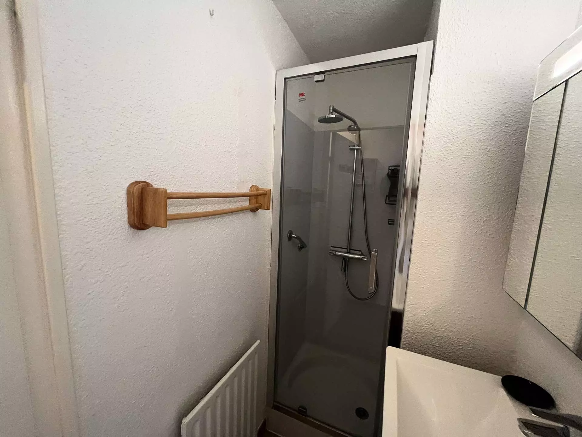 Cet appartement situé au 1er étage se compose d'une entrée, un séjour avec un canapé convertible 2 places, un coin cuisine équipé , un coin nuit avec 1 lit deux personnes, une salle d'eau et un wc