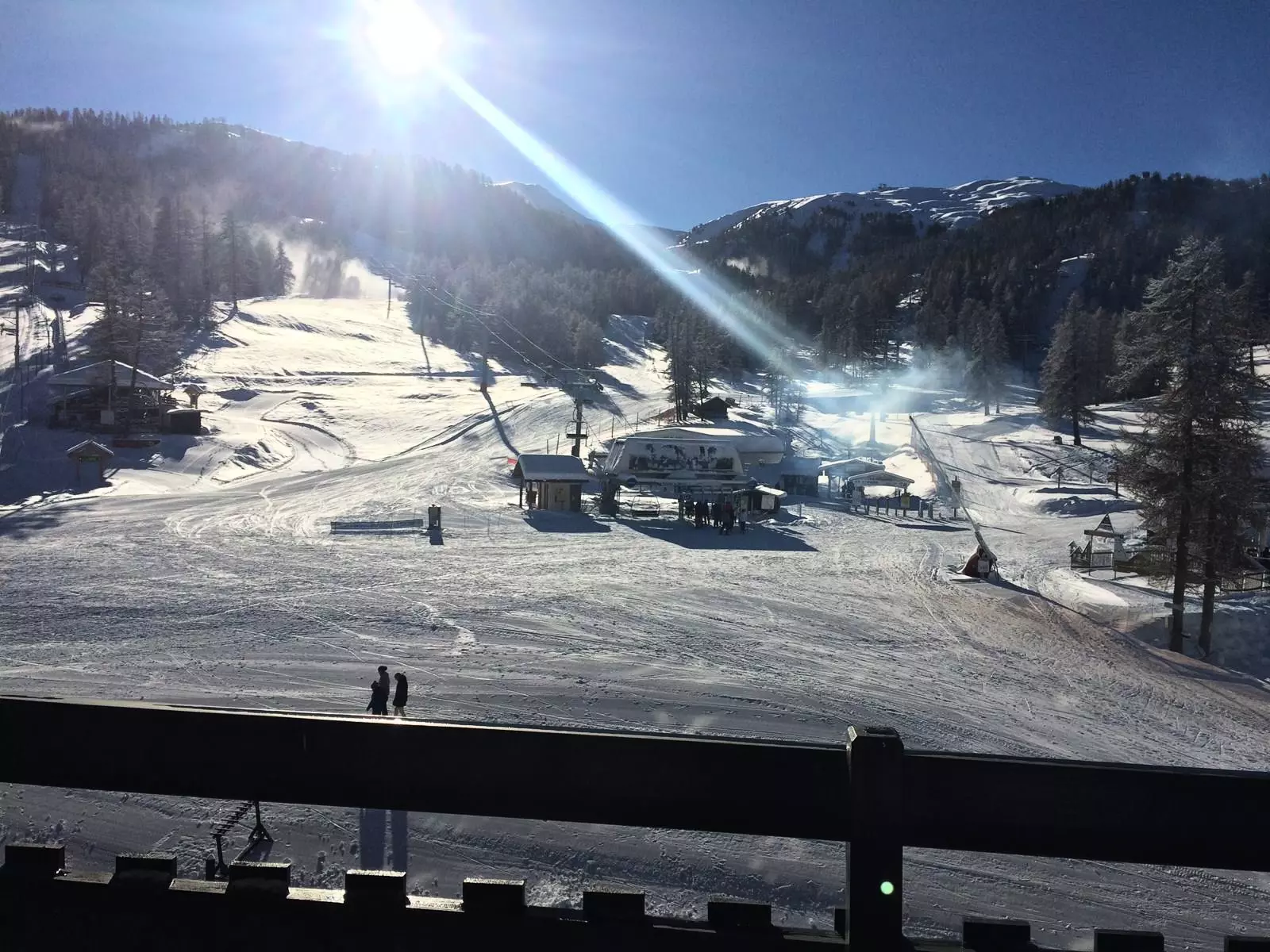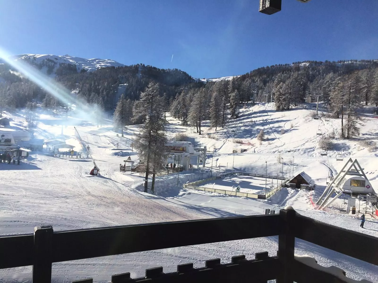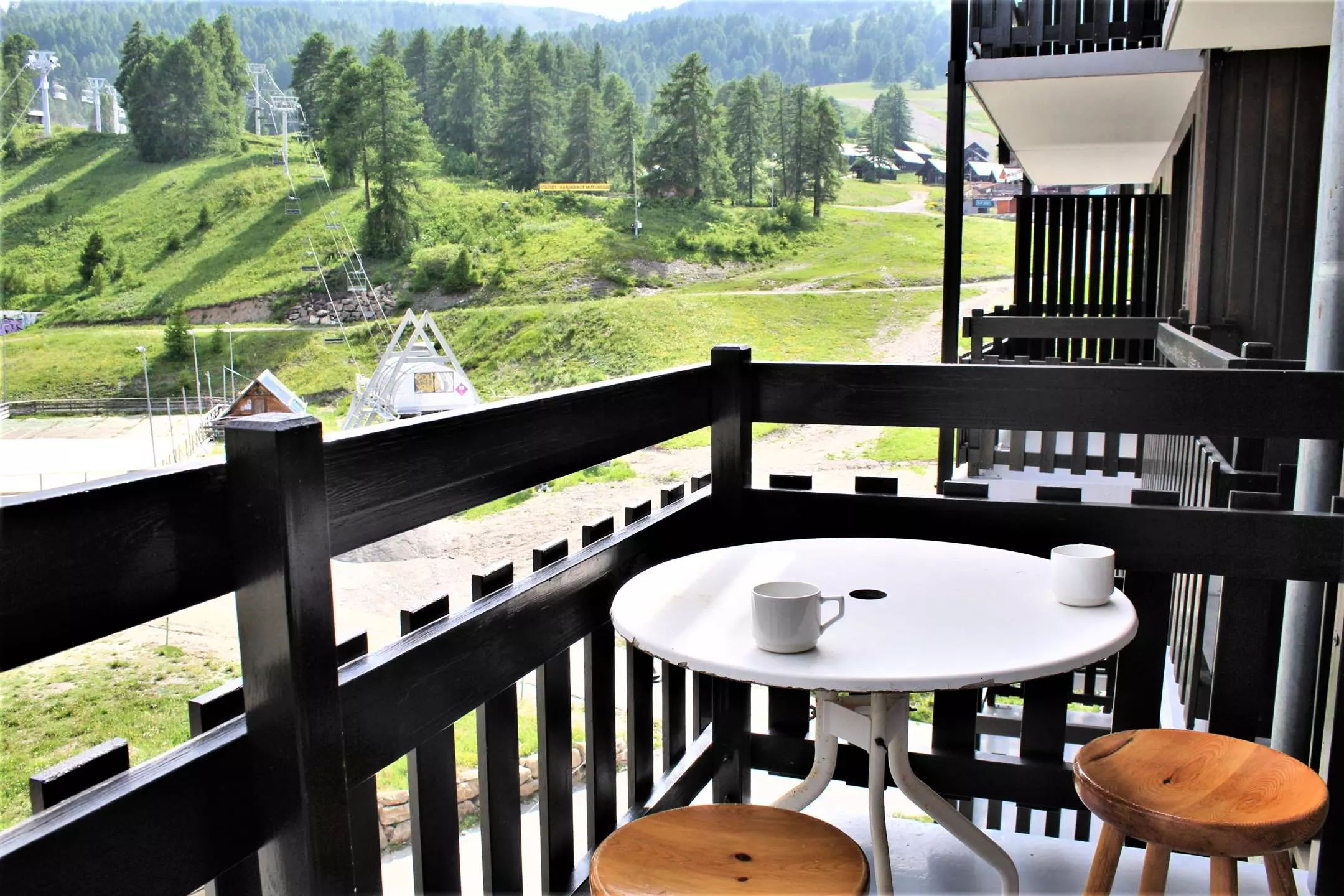 Le balcon est exposé Sud et offre une vue sur les pistes.