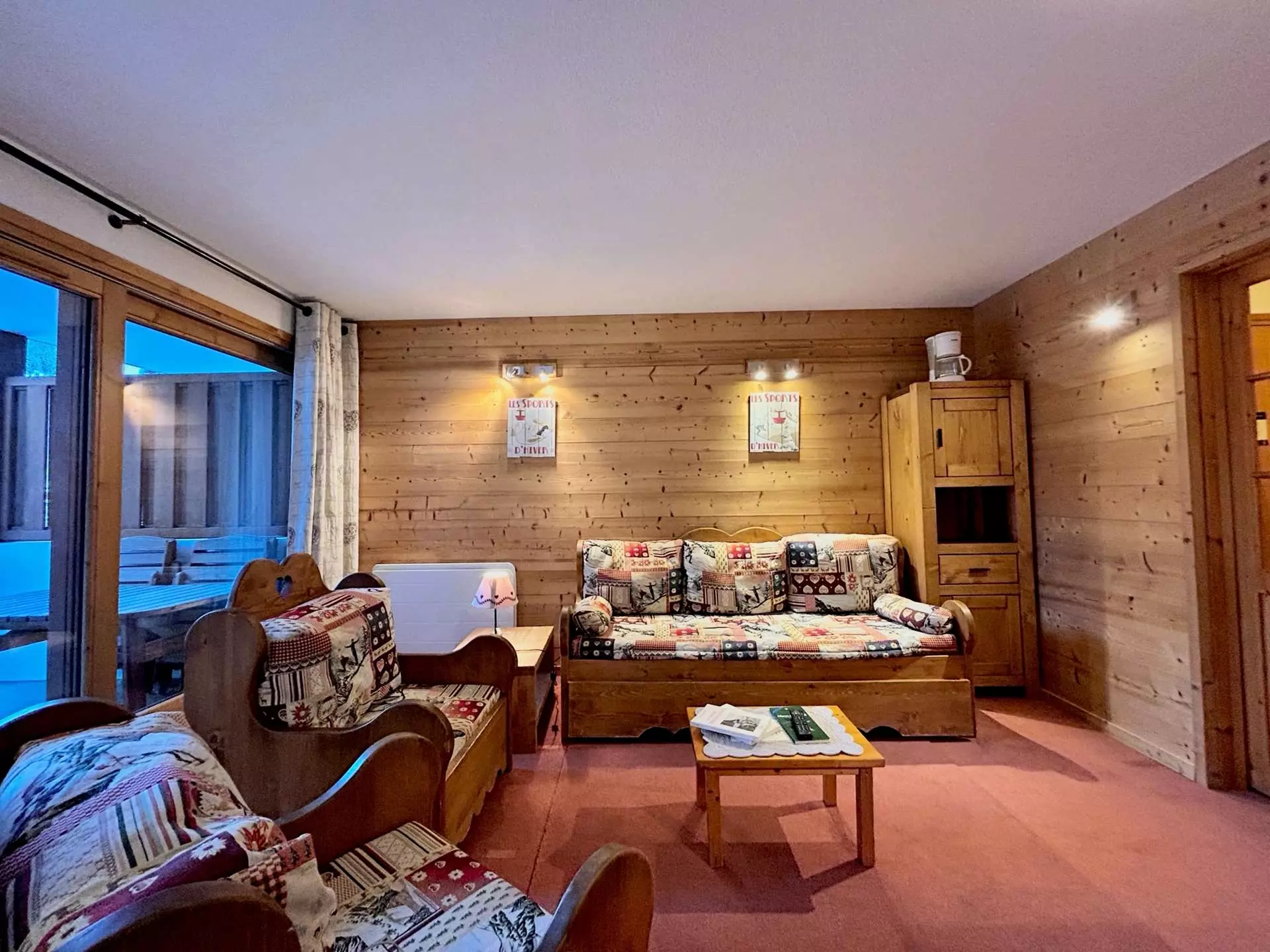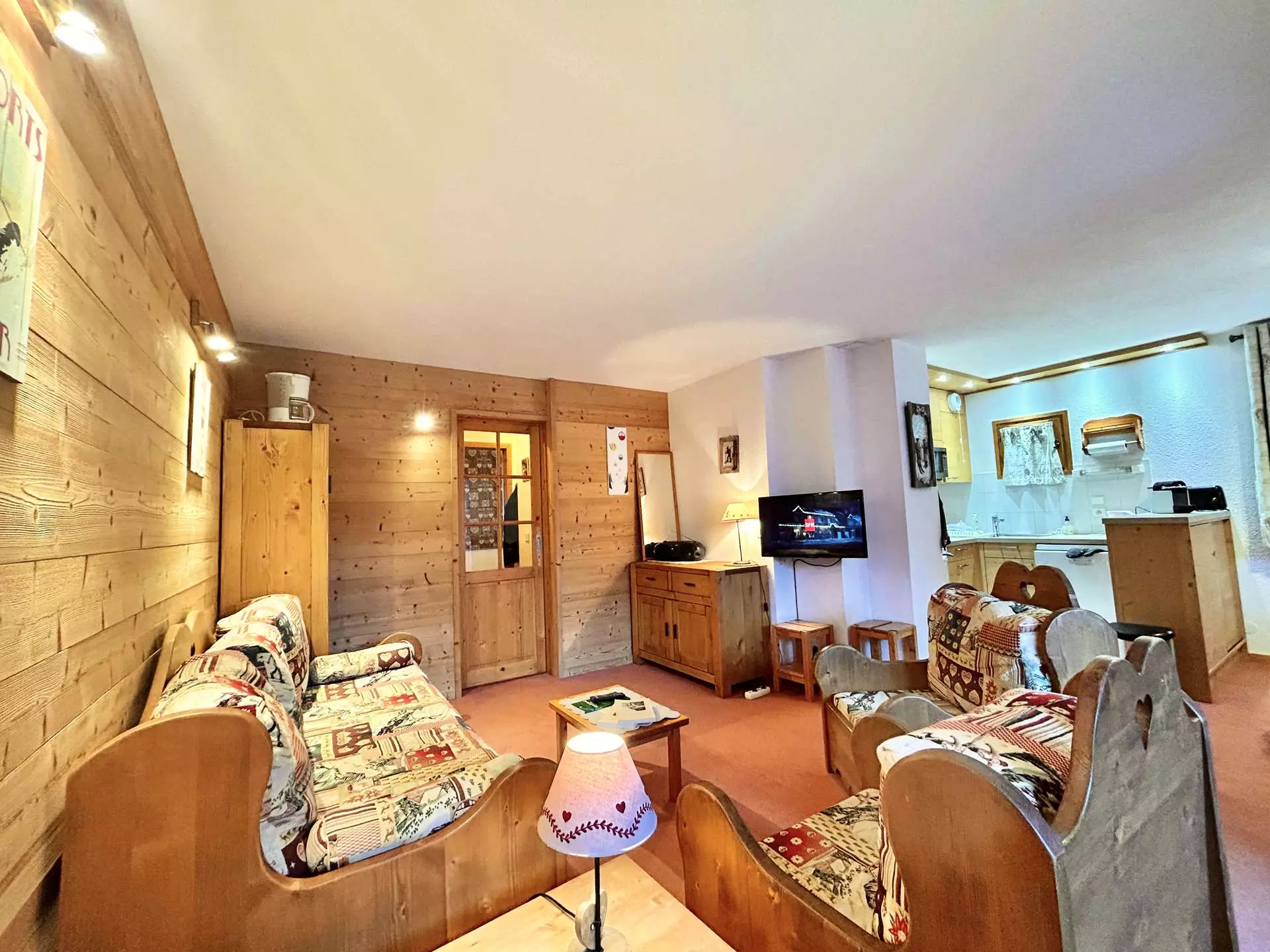 Ce joli appartement studio est situé au rez de chaussée de la résidence. Il se compose d'une cuisine équipée ouverte sur un séjour donnant sur une terrasse Ouest. Vous disposez d'un coin repas, d'un petit salon avec canapé, d'un lit montagne pour 2 personnes en 140 et d'une télévision. Dans l'entrée vous trouverez 1 ensemble de lits clos superposés, une salle d'eau avec douche et des toilettes. Vous disposez d'un casier à skis et d'une place de parking dans le garage de la résidence.