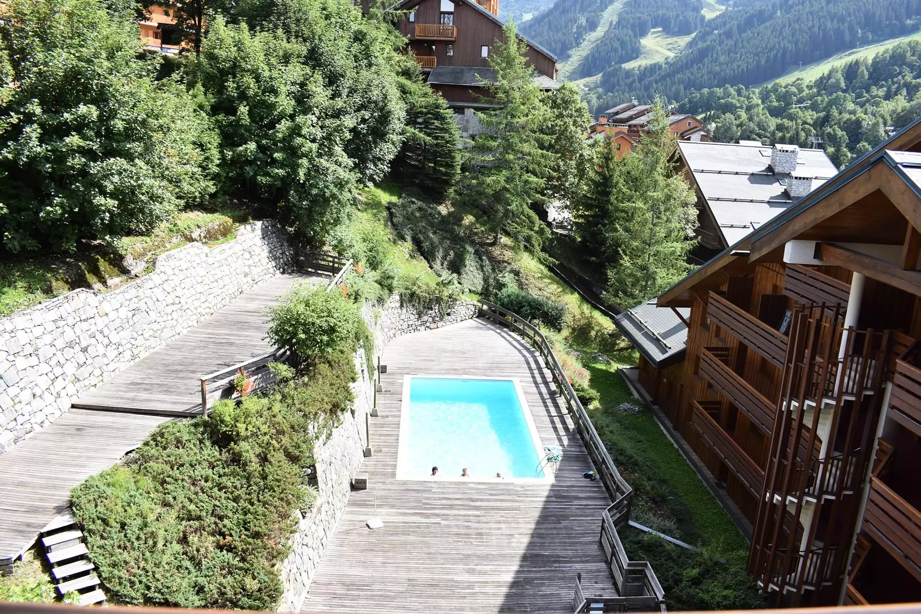 La résidence "Le Cristal" avec piscine l'été est située en bas du centre de la station, à 150m des commerces, des restaurants et à 100m de l'arrêt de la navette gratuite. Elle est à environ 200m des pistes.