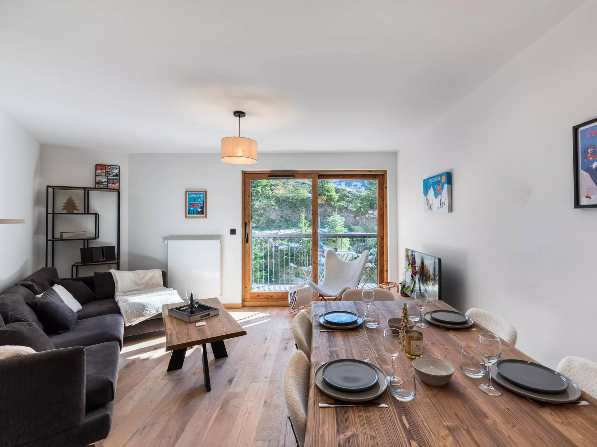 - Salon avec TV, canapé convertible, balcon exposé Nord-Ouest