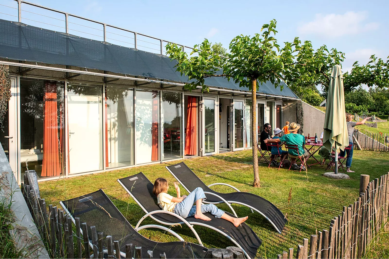 De nombreux gîtes fonctionnels de 2 à 8 personnes vous plongent dans une ambiance typique de notre chère Corrèze, tout ça face aux vallées. Construits en béton brut dans un style épuré, des toits végétalisés, nos gîtes sont tous respectueux de l'environnement, offrant une température optimisée grâce à la thermorégulation du sol et une ventilation naturelle. Bienvenue en pleine nature !