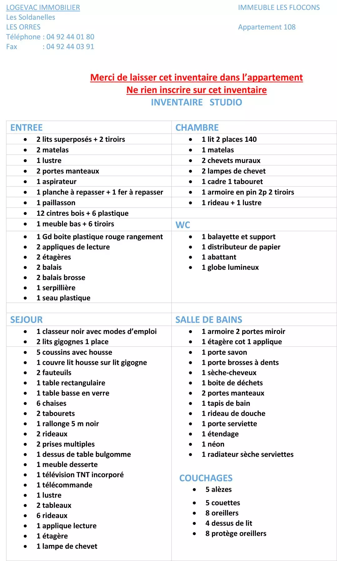 APPARTEMENT N° 108 LES FLOCONS