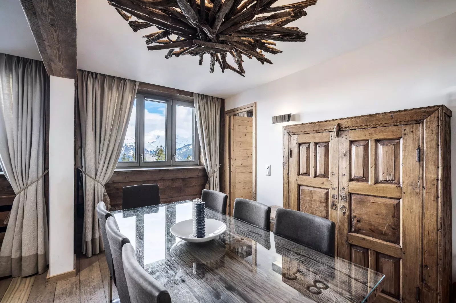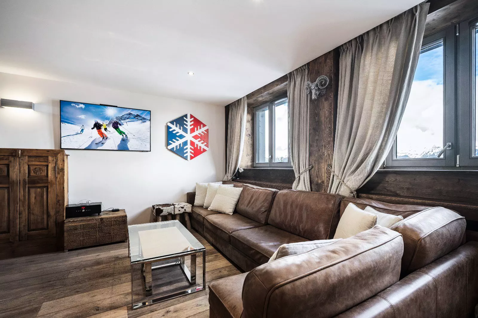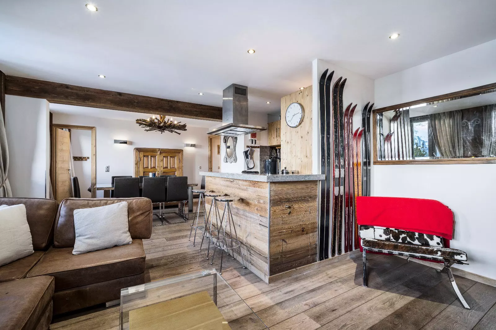Appartement moderne d'environ 115m² pour 6 personnes avec 3 chambres, situé à proximité des pistes dans le quartier centre de Courchevel.