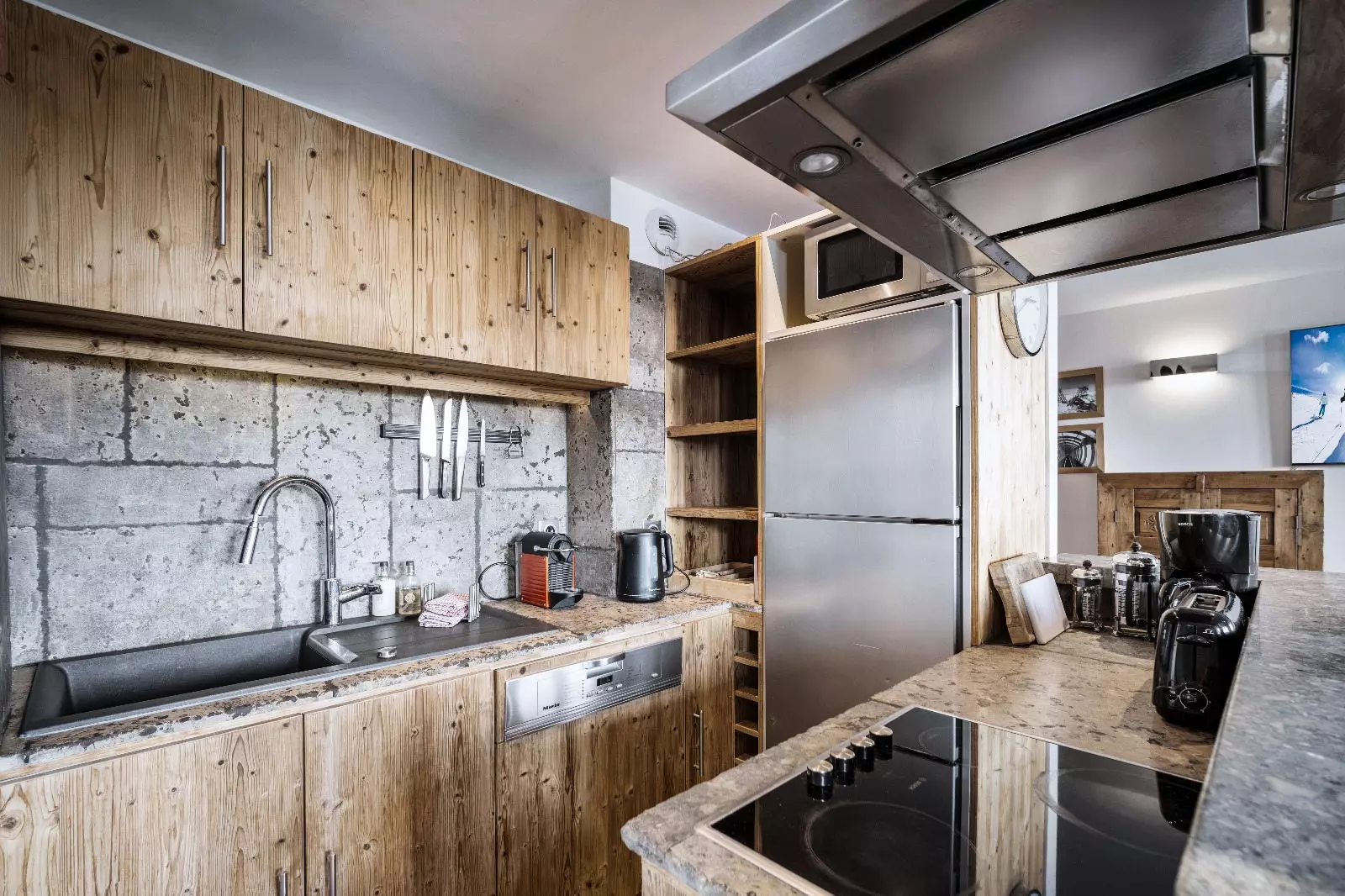 - Une cuisine ouverte équipée