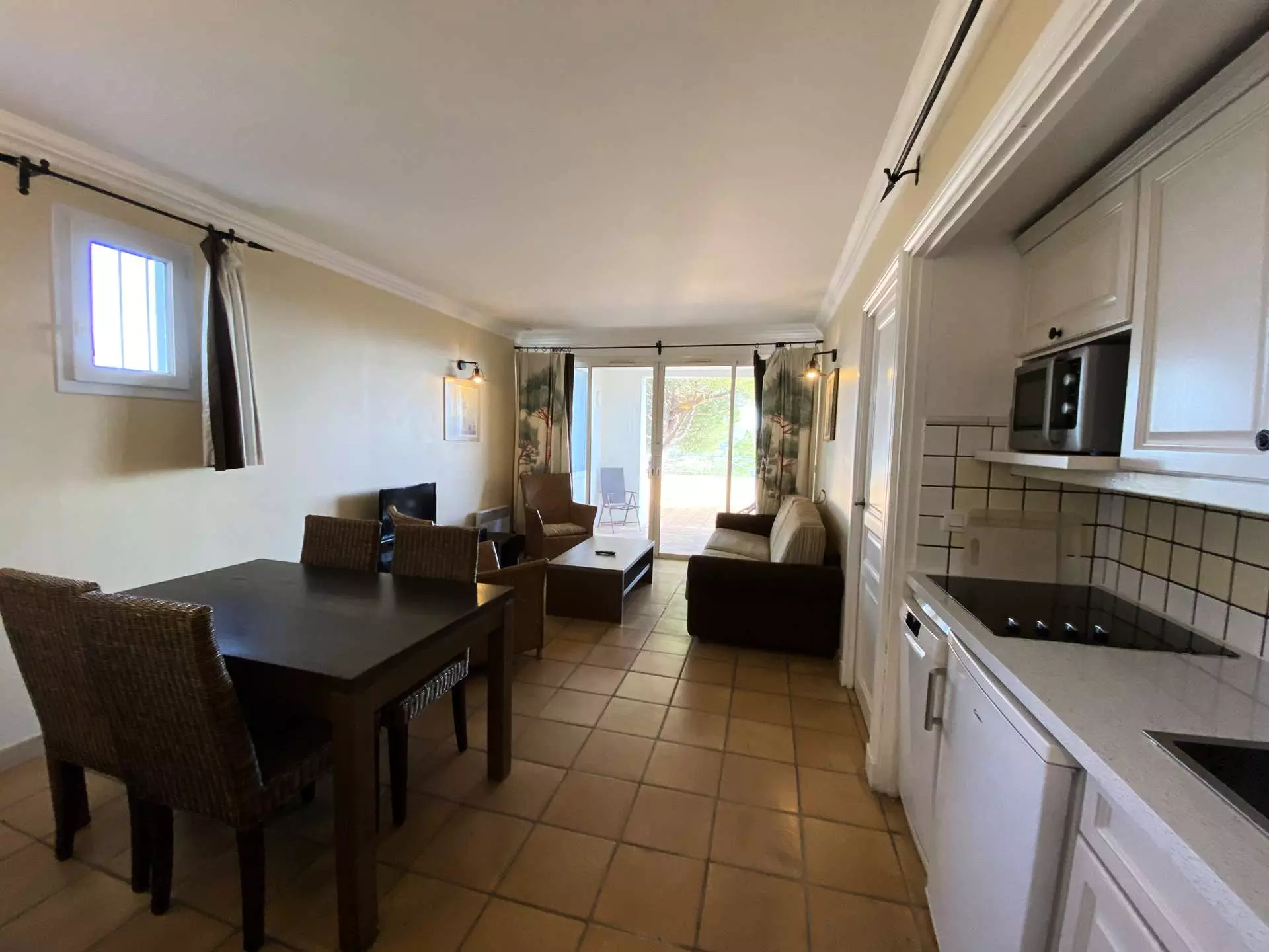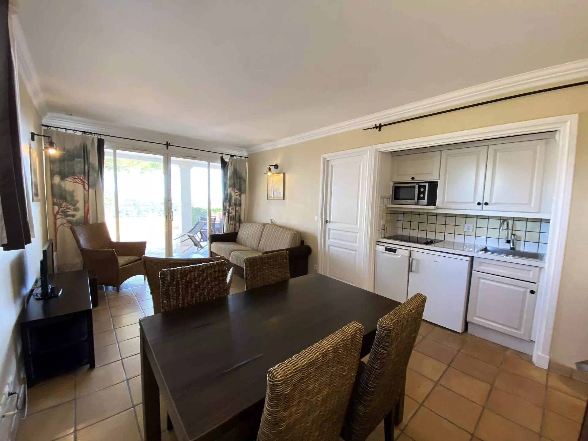 Les avantages de ce logement dans le golfe de St-Tropez : une magnifique terrasse avec une belle vue sur la mer, un lave-vaisselle, lave-linge et un parking privatif.