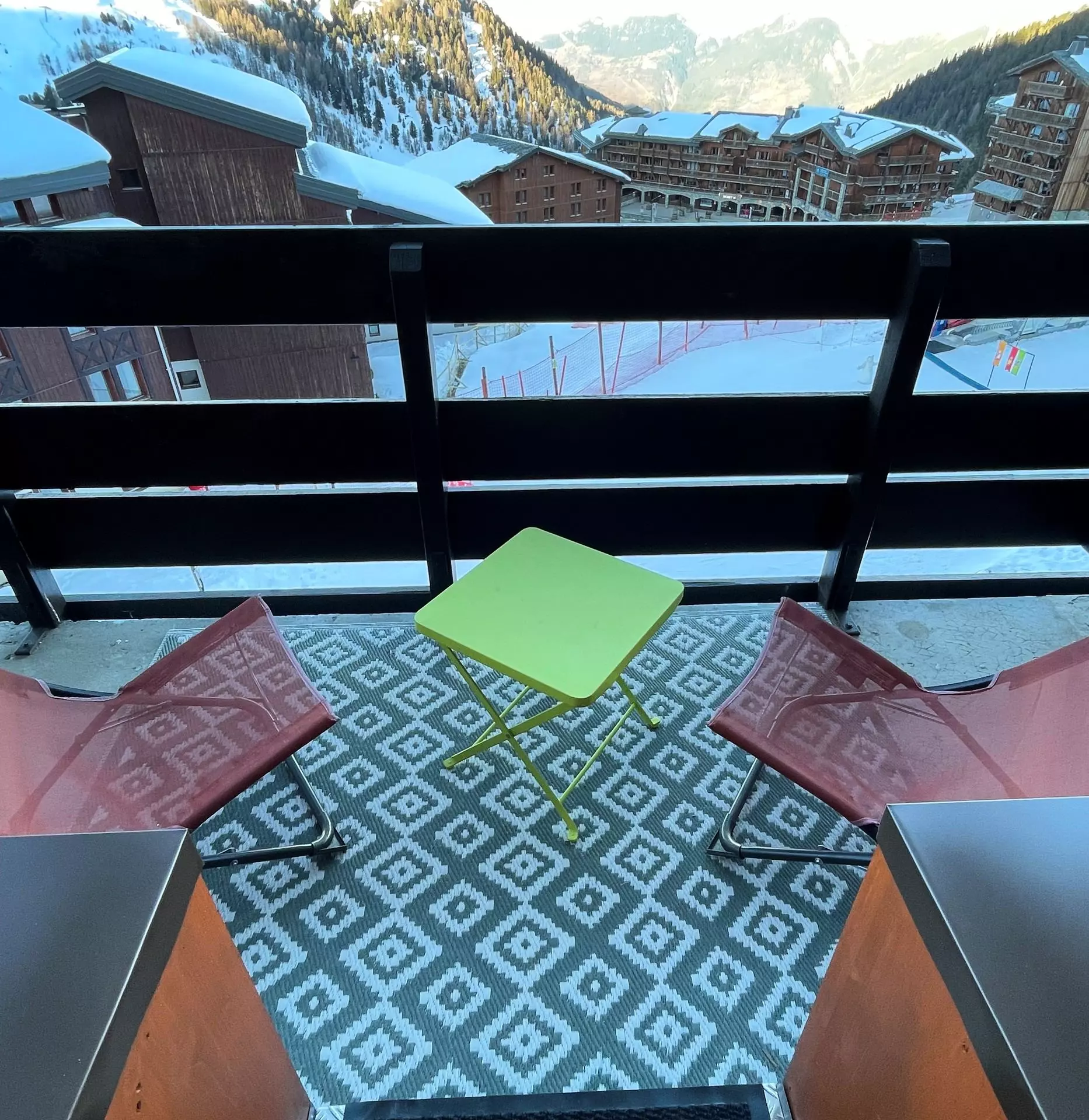 Il est situé au sud ouest et au 5ème étage avec un balcon et vue sur les pistes.