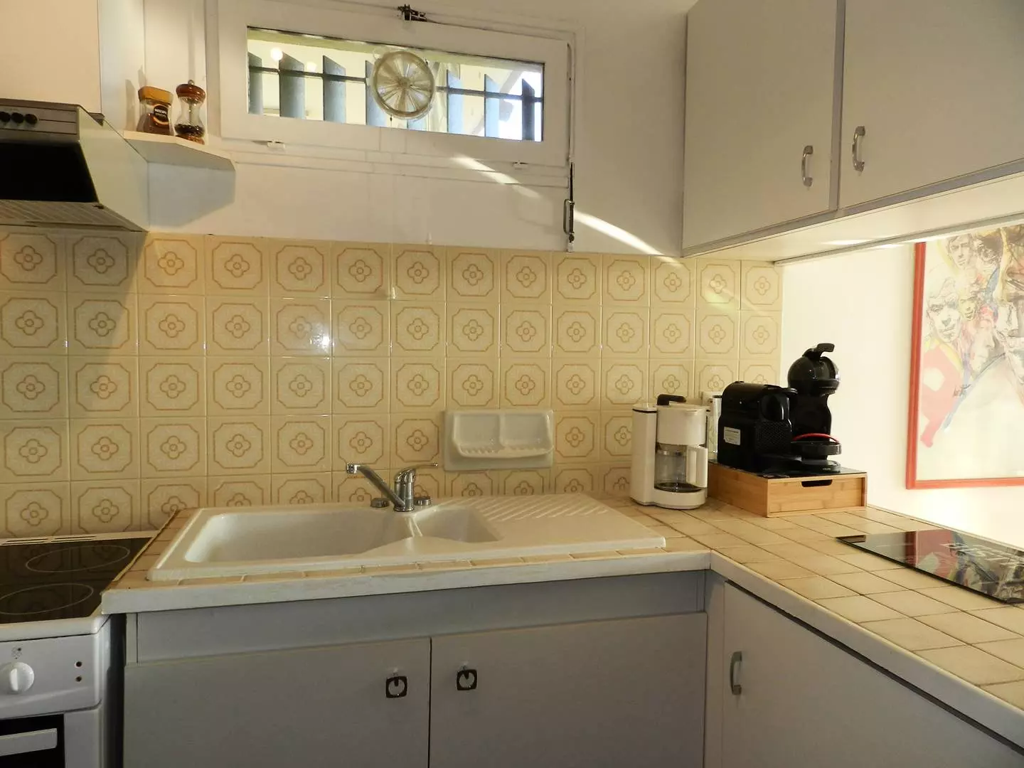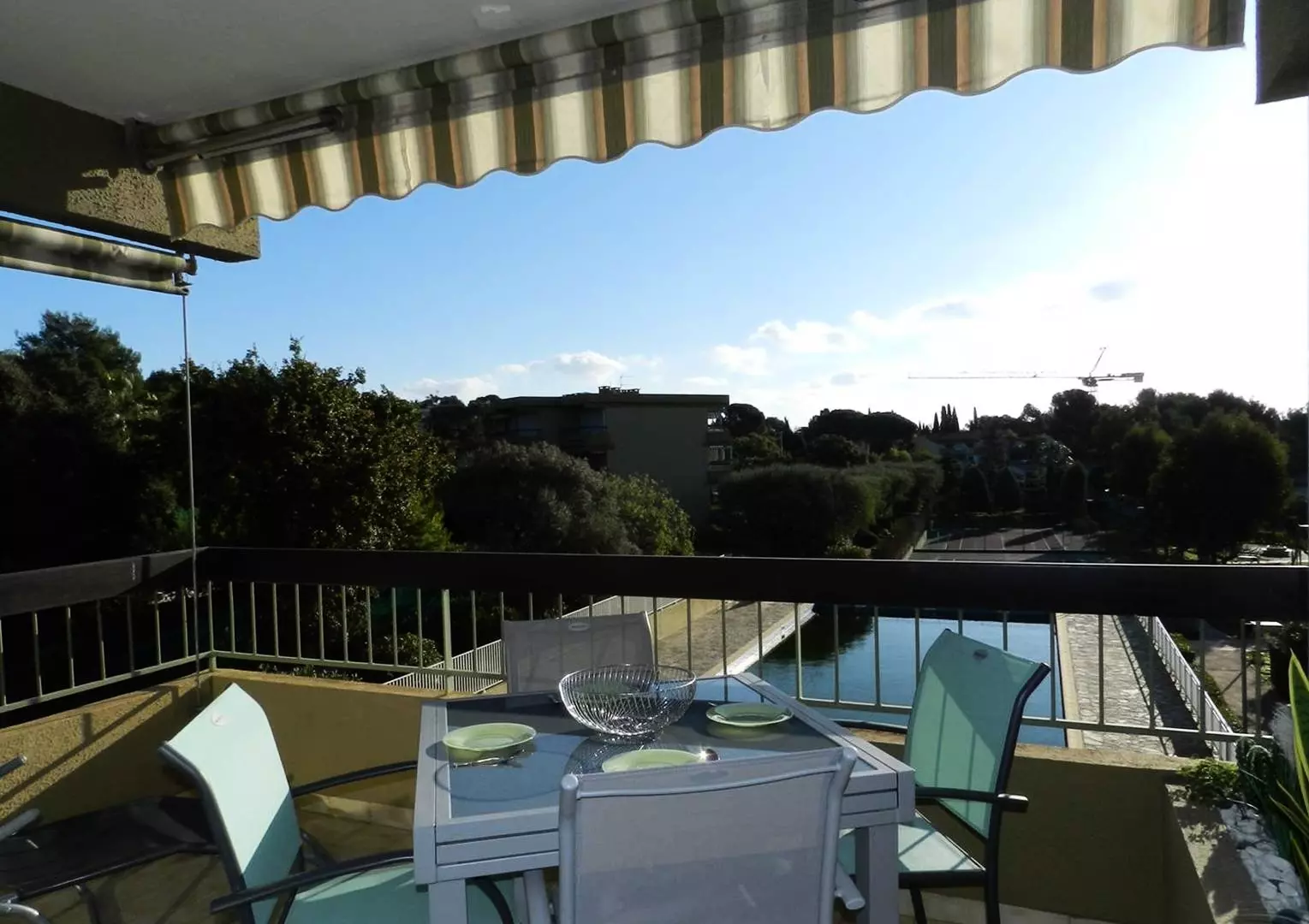Cette location de vacances au deuxième étage vous propose une terrasse exposée Est avec vue sur la piscine. L'appartement se compose d'un séjour avec canapé clic clac, d'une cuisine équipée, d'une chambre climatisée avec lit double, d'une salle de bains avec wc indépendant.