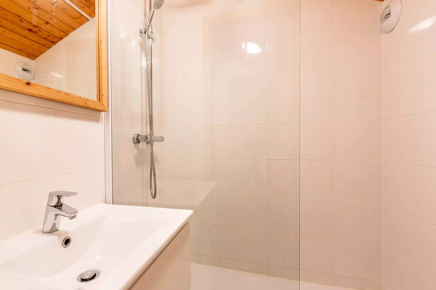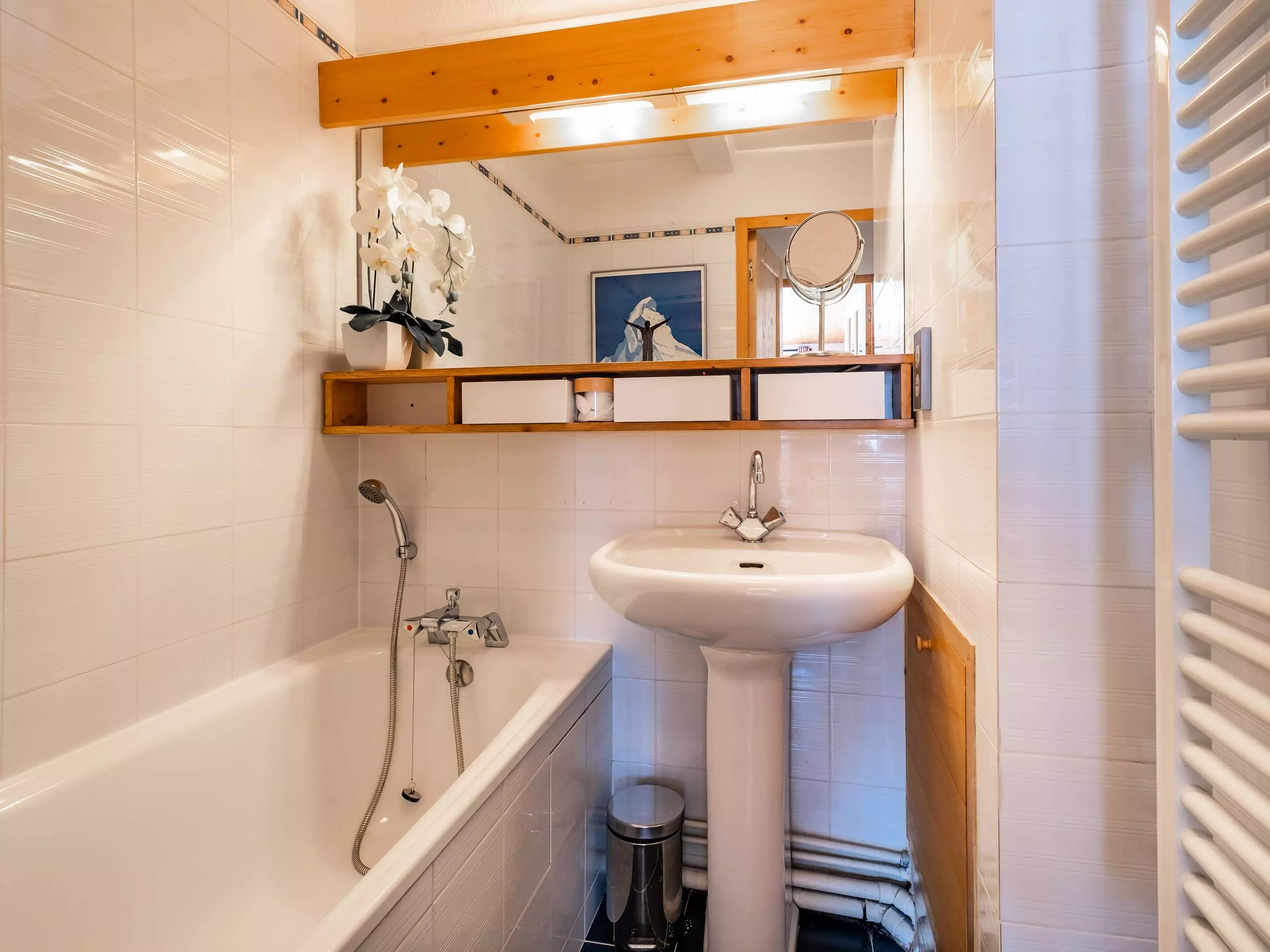 Un couchage simple dans l'entrée. Salle de bains avec baignoire, WC séparés. Casier à skis dans la résidence.