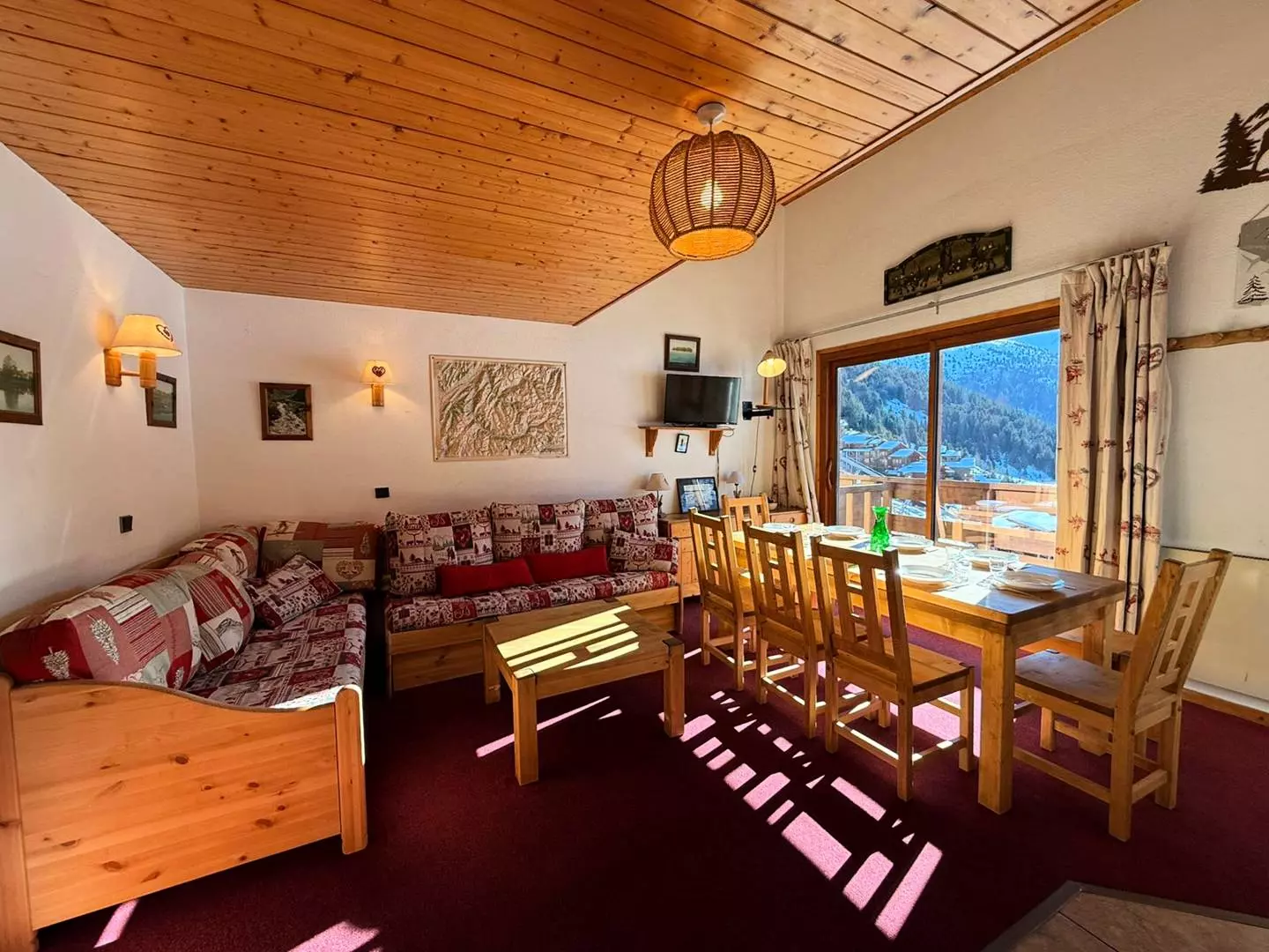 Séjour avec une banquette lit simple (80x190), un canapé et une télévision. Chambre avec un lit double (140x190). Une salle de bains et un wc séparé. La cuisine est rénovée et entièrement équipée (plaques vitrocéramiques, four, micro ondes, lave vaisselle, bouilloire, grille-pain, cafetière et réfrigérateur). Sur la mezzanine, se trouve deux chambres mansardées dont une avec trois lits simples (80x190) et une avec un lit double (140x190). Une salle de douche avec wc. Balcon. Casier à ski et ascenseur dans la résidence. Animaux non admis. Appartement non fumeur. Etage -1. Départ skis aux pieds.