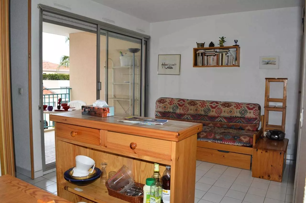 A 150m de la mer, sur le port de plaisance d'Argeles sur mer, cet appartement de vacances au 2ième étage, se compose d'un séjour avec un convertible 2 places et une terrasse attenante, une chambre avec 1 lit 2 places, une kitchenette équipée, une salle d'eau et des wc indépendants.
