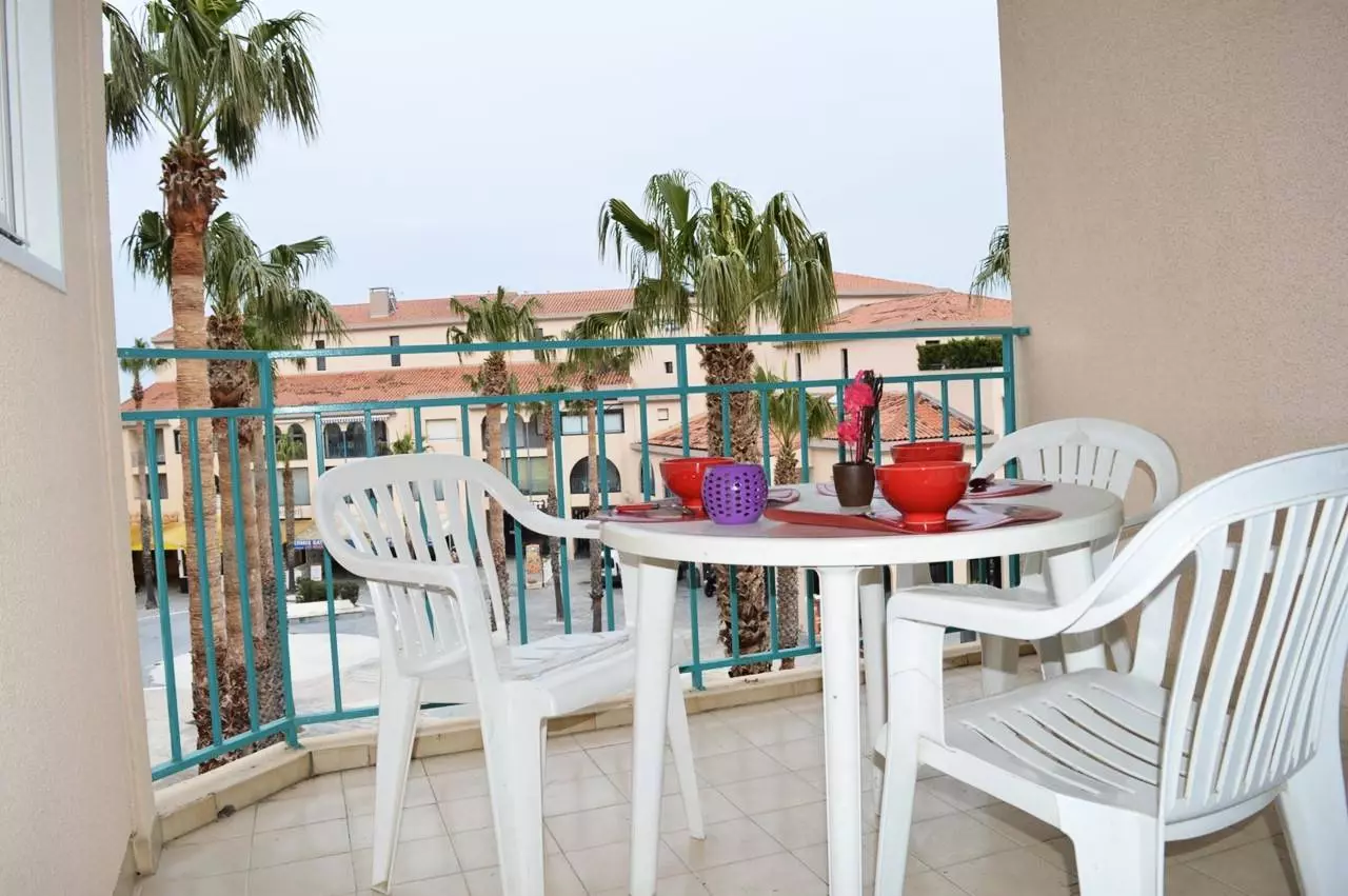 Les Plus de cet hébergement de vacances au Port d'Argeles Sur Mer : proximité de la mer et des commerces, parking privé, loggia avec salon de jardin exposée Ouest avec vue sur le port et la montagne, télévision.