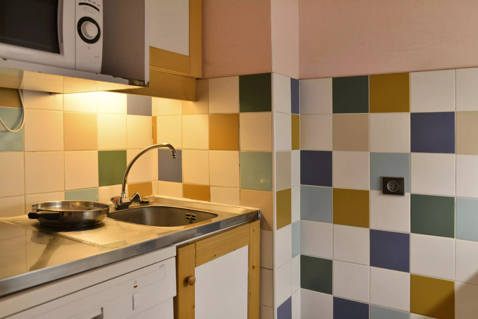 Cuisine : indépendante avec 1 plaque vitrocéramique 2 feux, un micro-ondes, un réfrigérateur et un lave-vaisselle