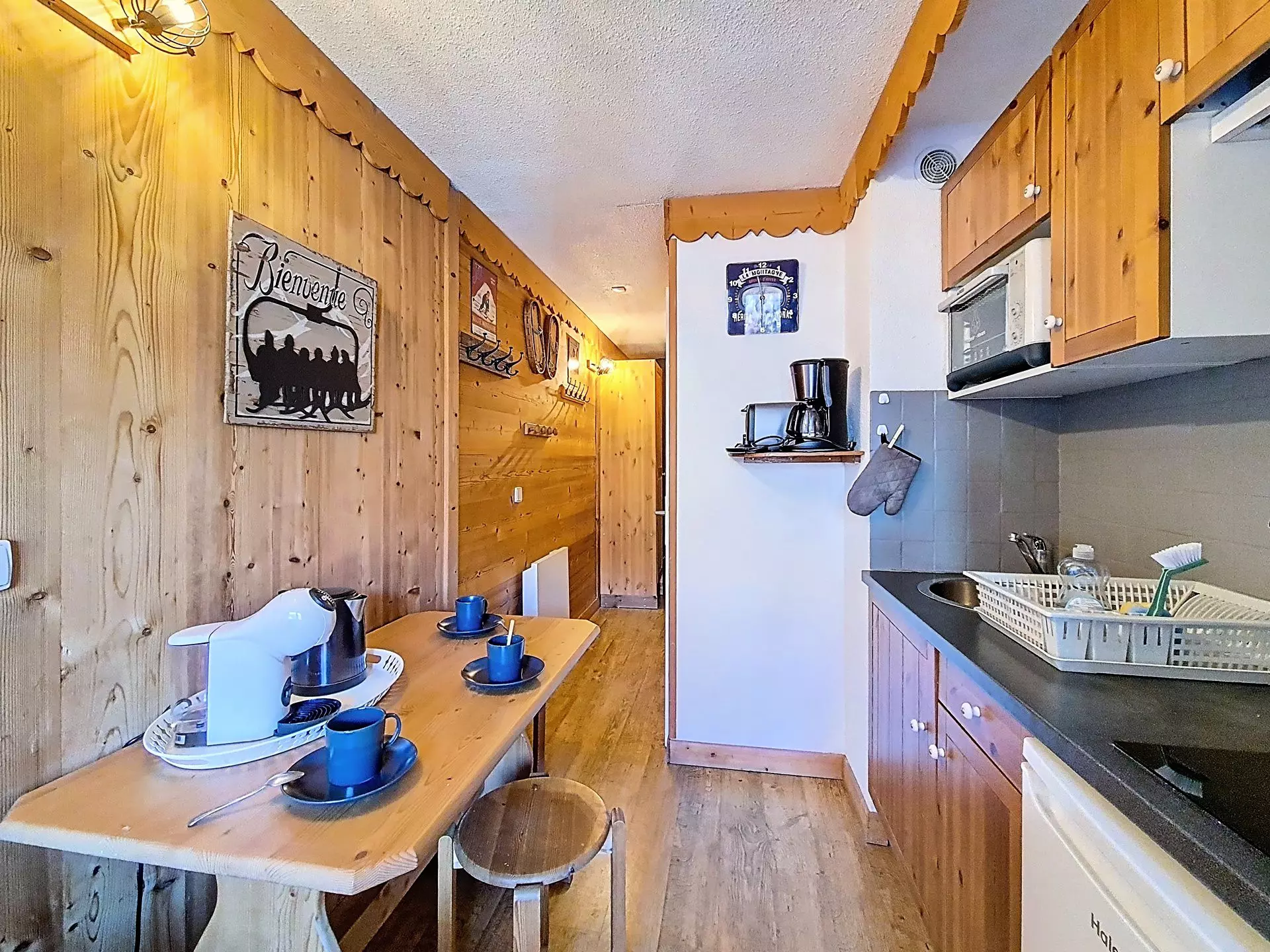 Cuisine équipée avec mini-four, micro-ondes lave vaisselle, 2 plaques, bouilloire