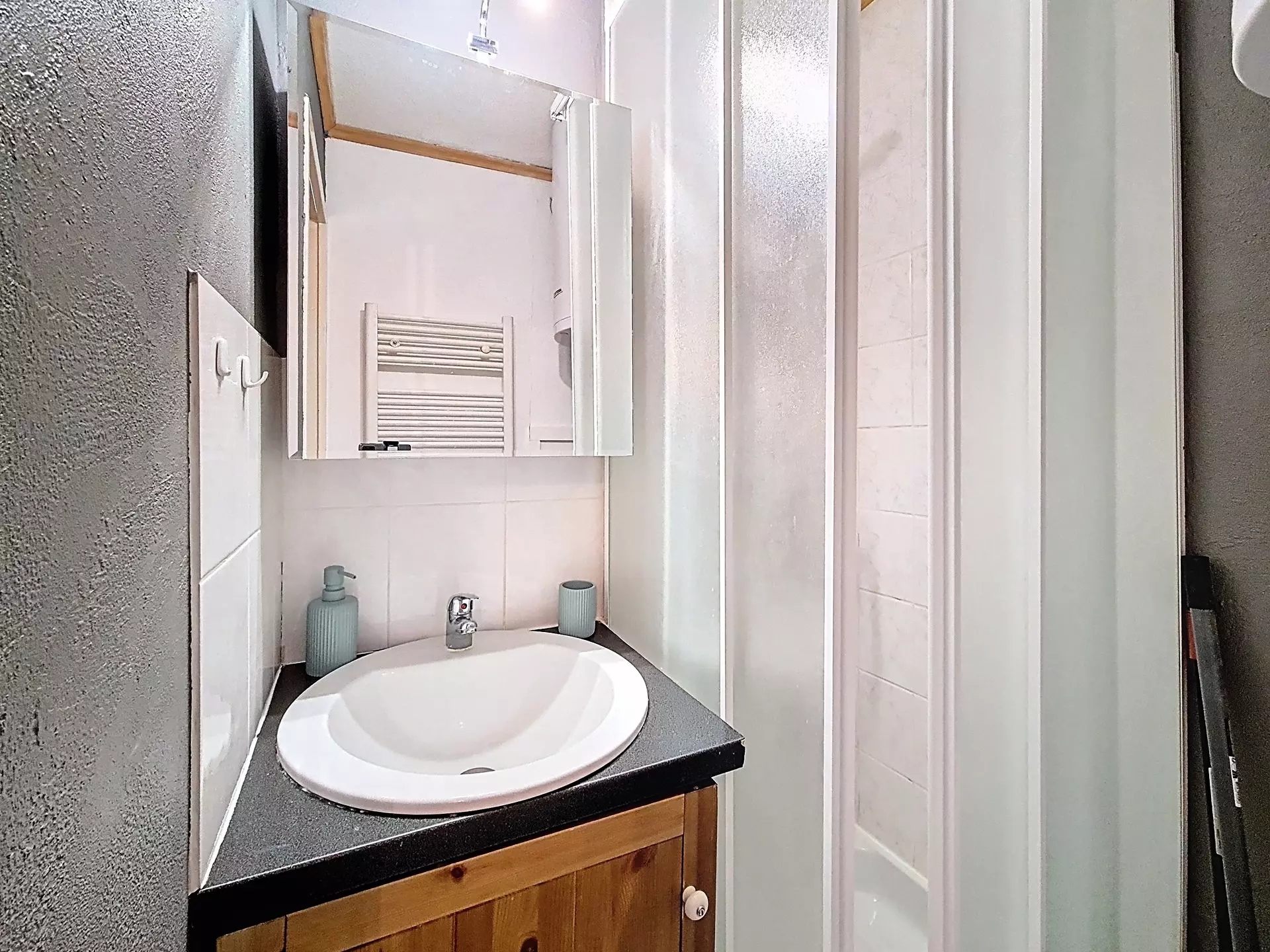 Salle de bains avec douche.