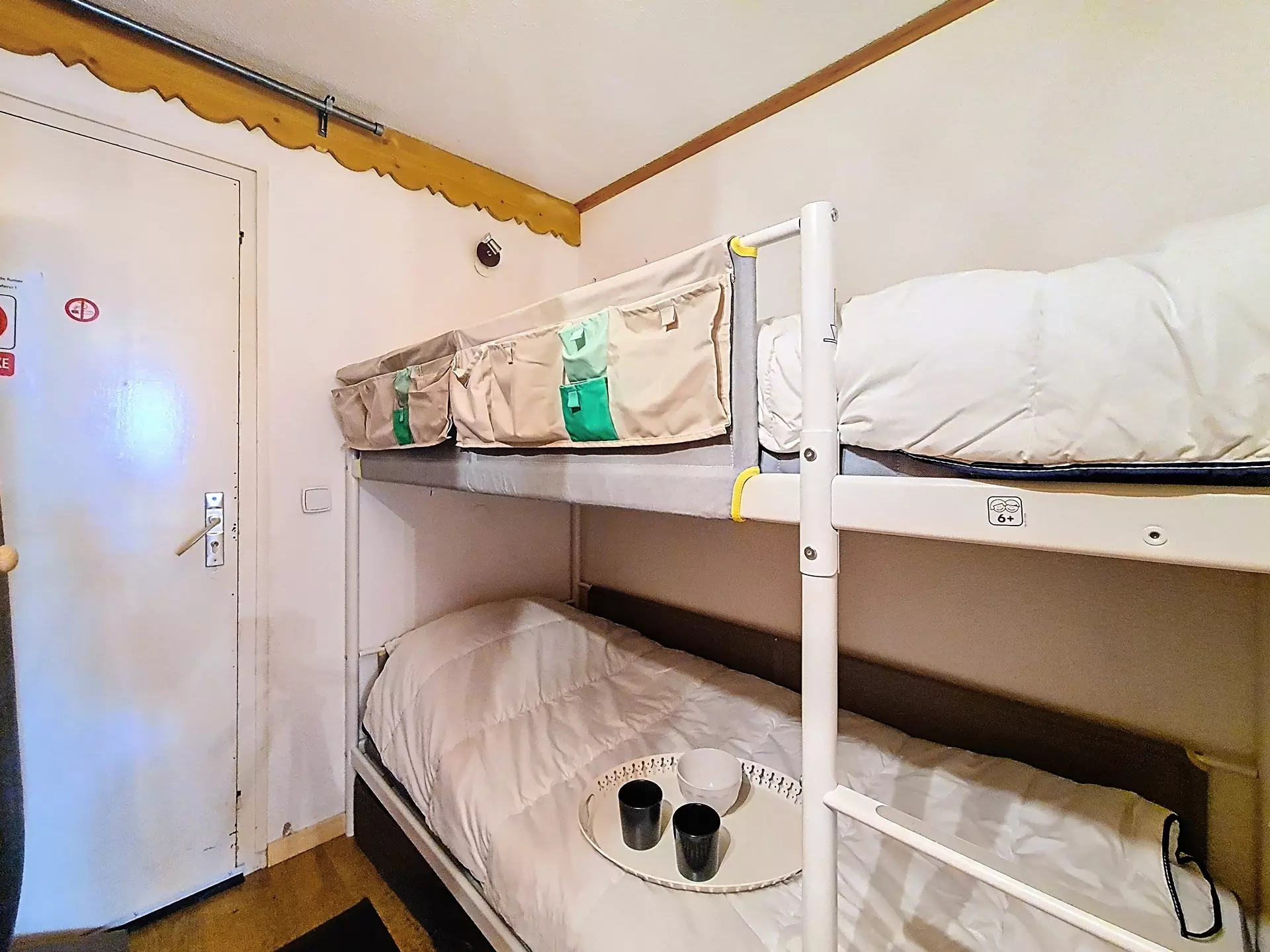 Cabine fermée par une porte avec 1 x 2 lits superposés.