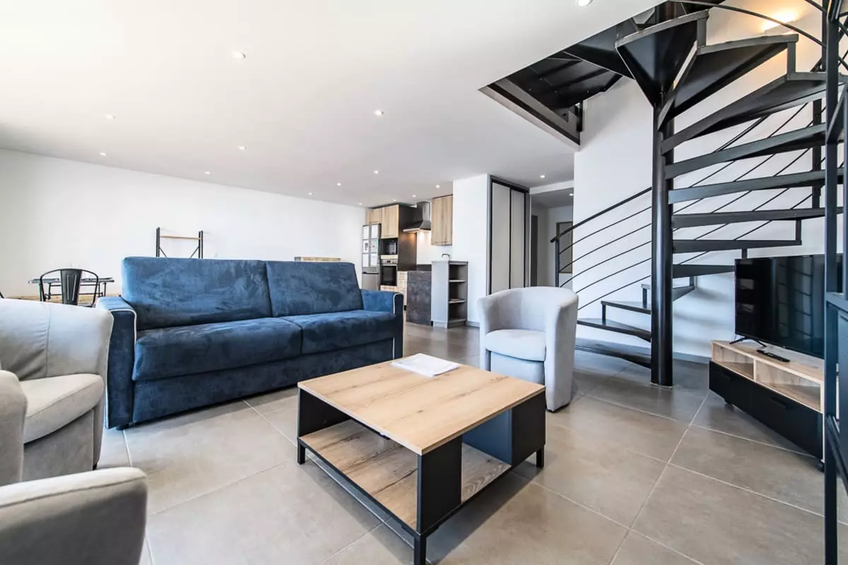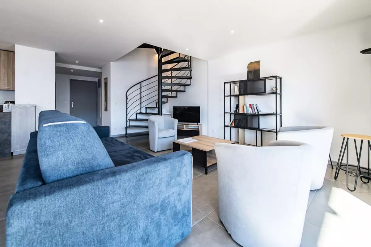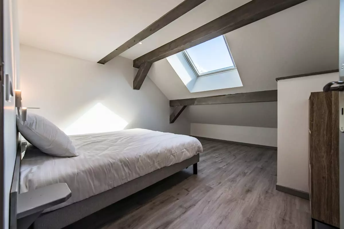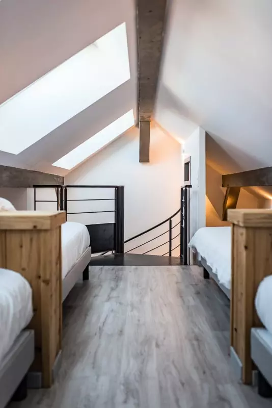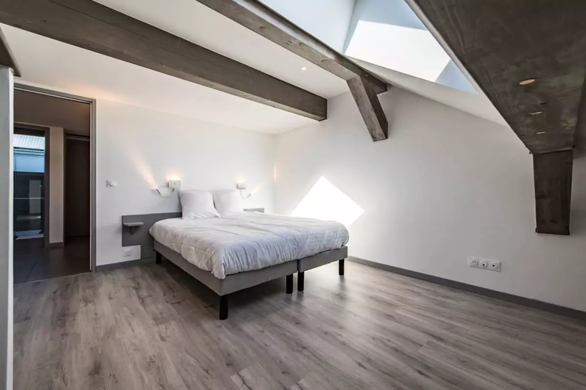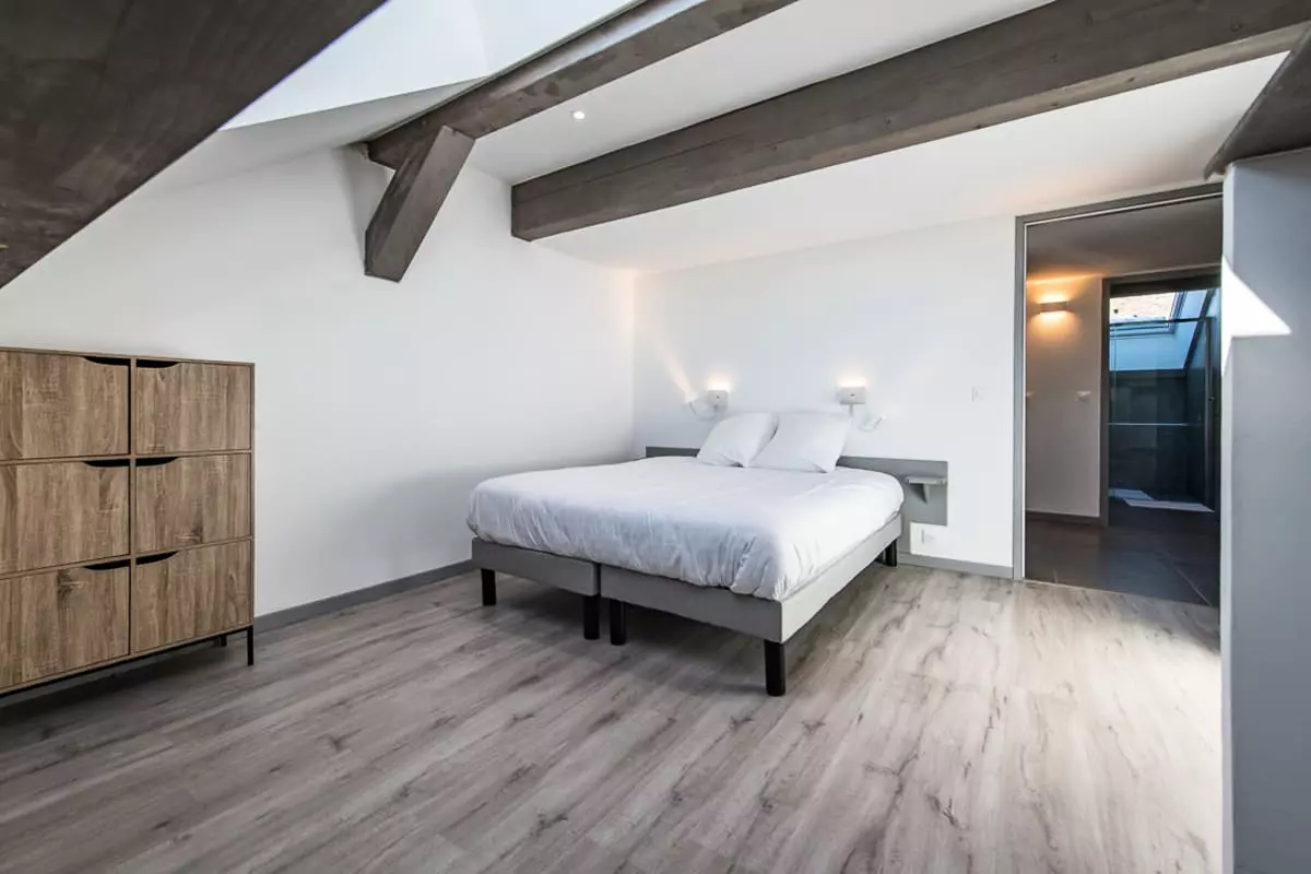 - Les chambres sont situées aux étages, accessibles par un escalier, ce qui peut être difficile pour les personnes à mobilité réduite. Cependant, le bâtiment dispose d’un ascenseur, et le canapé-lit du salon ainsi qu'une salle de bain équipée de WC sont de plain-pied.