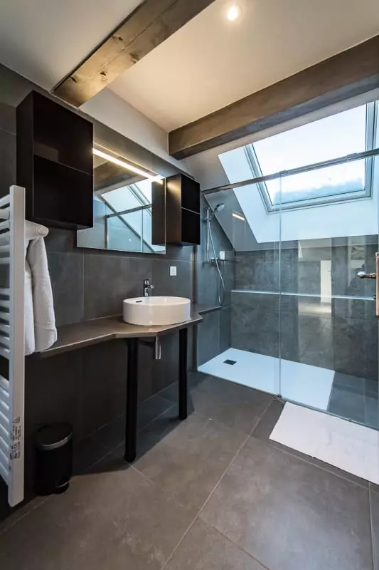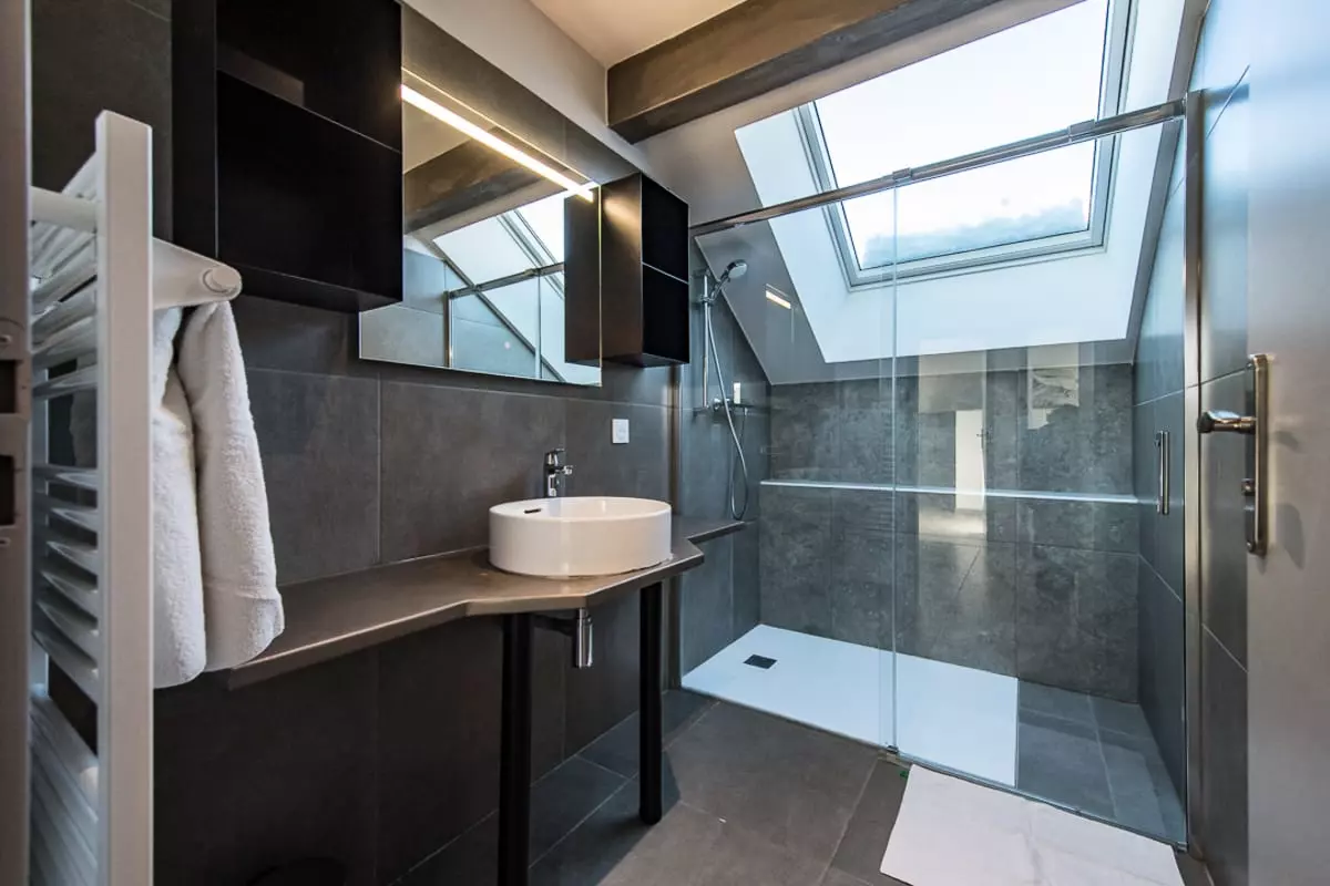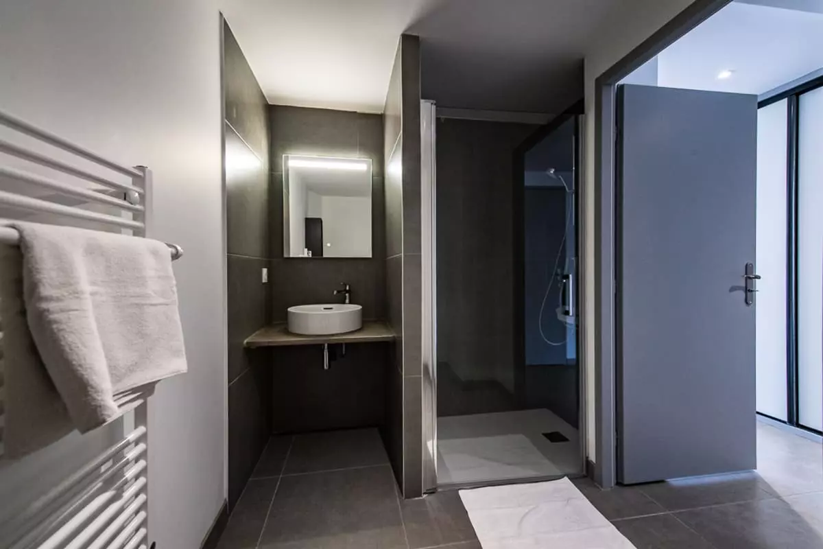 Vous trouverez 3 salles de bain modernes : 2 équipées de douches et 1 avec une baignoire. Les serviettes sont fournies.