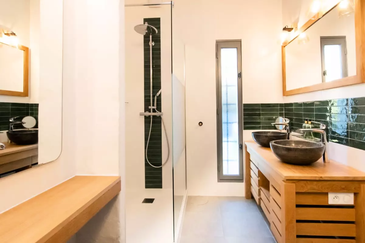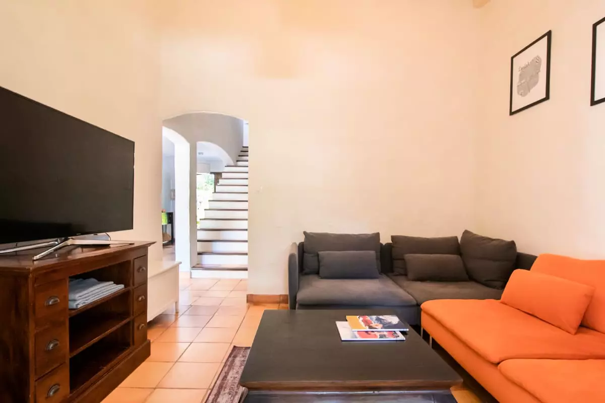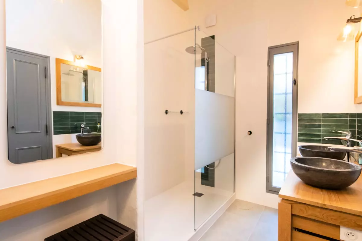 L'extérieur se compose de 2 terrasses ombragées avec un coin salon de jardin et un coin table à manger. Profitez et détendez vous dans le bains à remous à l'abri des regards. La Villa Julianne dispose d'un garage pour les vélos et d'une borne de recharge pour les véhicules électriques.