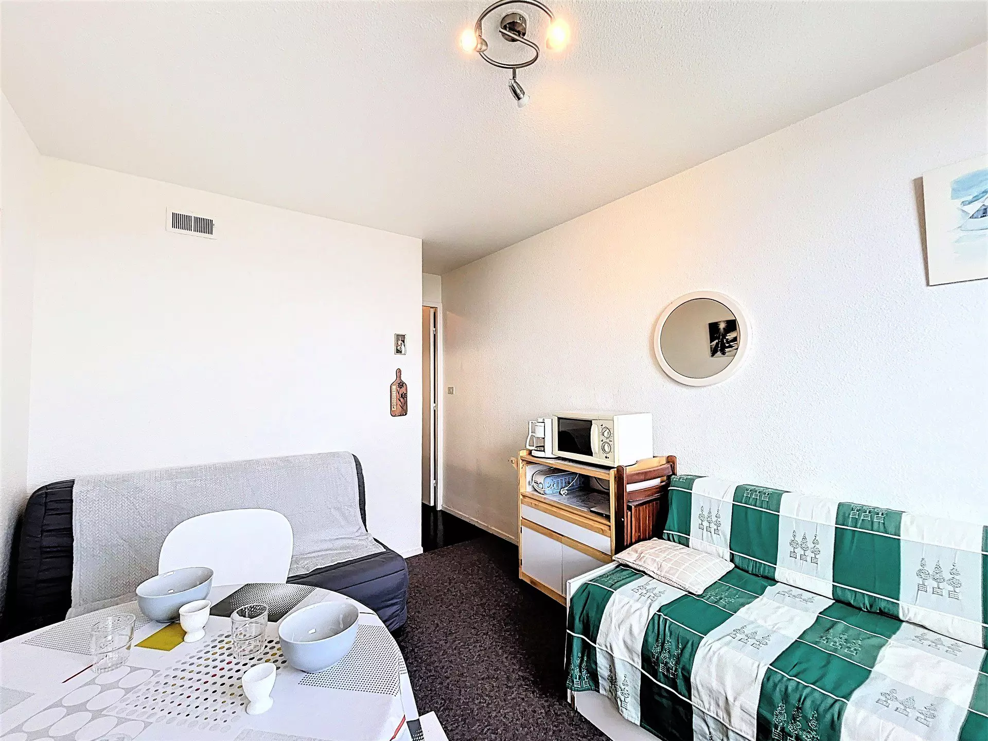 Studio de 16 m² pour 2 à 3 personnes rénové avec goût. Situé au 7e étage de la résidence Zodiaque, exposition nord.