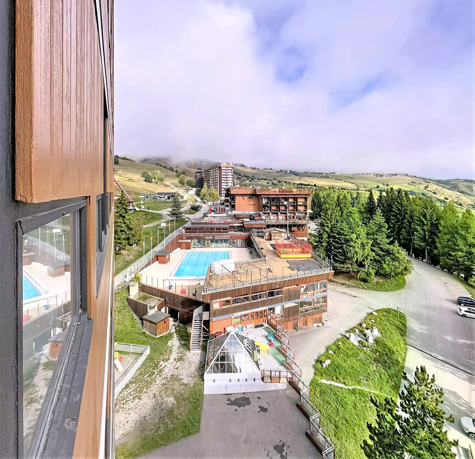 Cette résidence très bien située, est à proximité des commerces, de l'ESF, elle se situe au pied des pistes, et à 2 pas du front de neige. Garderie enfants à côté.