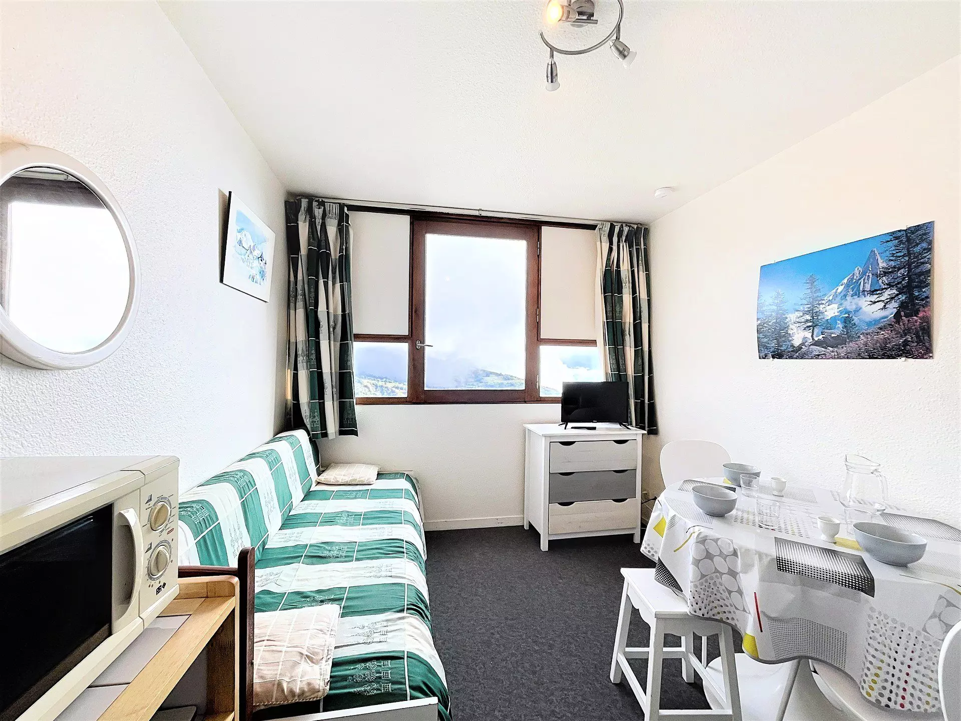 Studio idéalement situé, à côté du front de neige et du télésiège.