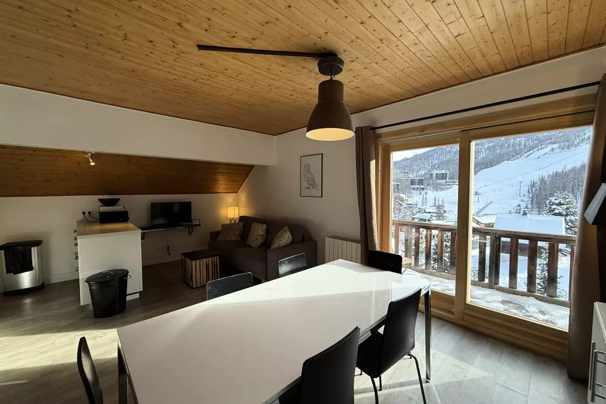 Après une journée sur les pistes, retrouvez-vous dans la spacieuse pièce à vivre pour partager une raclette ou une partie de cartes dans une ambiance conviviale.