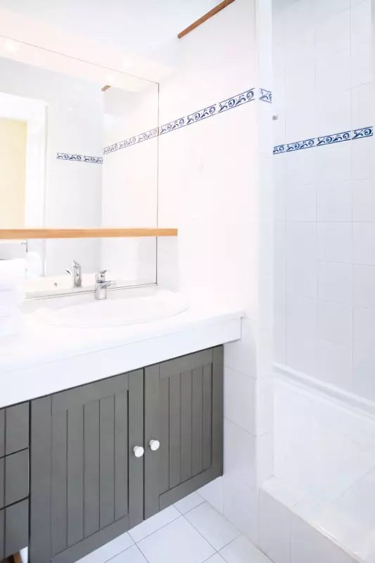 -Chambre 2 : lit queen-size, salle d’eau privative (vasque + sèche-serviettes).