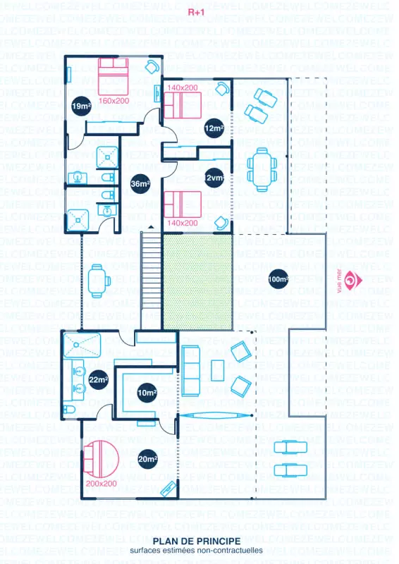 La villa Caïmite propose 240 m2 d'élégance répartis sur trois niveaux, pouvant accueillir confortablement jusqu'à 8 personnes. Ses quatre chambres sont aménagées avec soin : deux lits en 140 cm, un en 160 cm, et un grand lit rond vous attendent pour des nuits de sommeil réparateur. Trois salles de bain modernes et bien agencées garantissent confort et praticité, tandis que quatre WC assurent une intimité maximale.