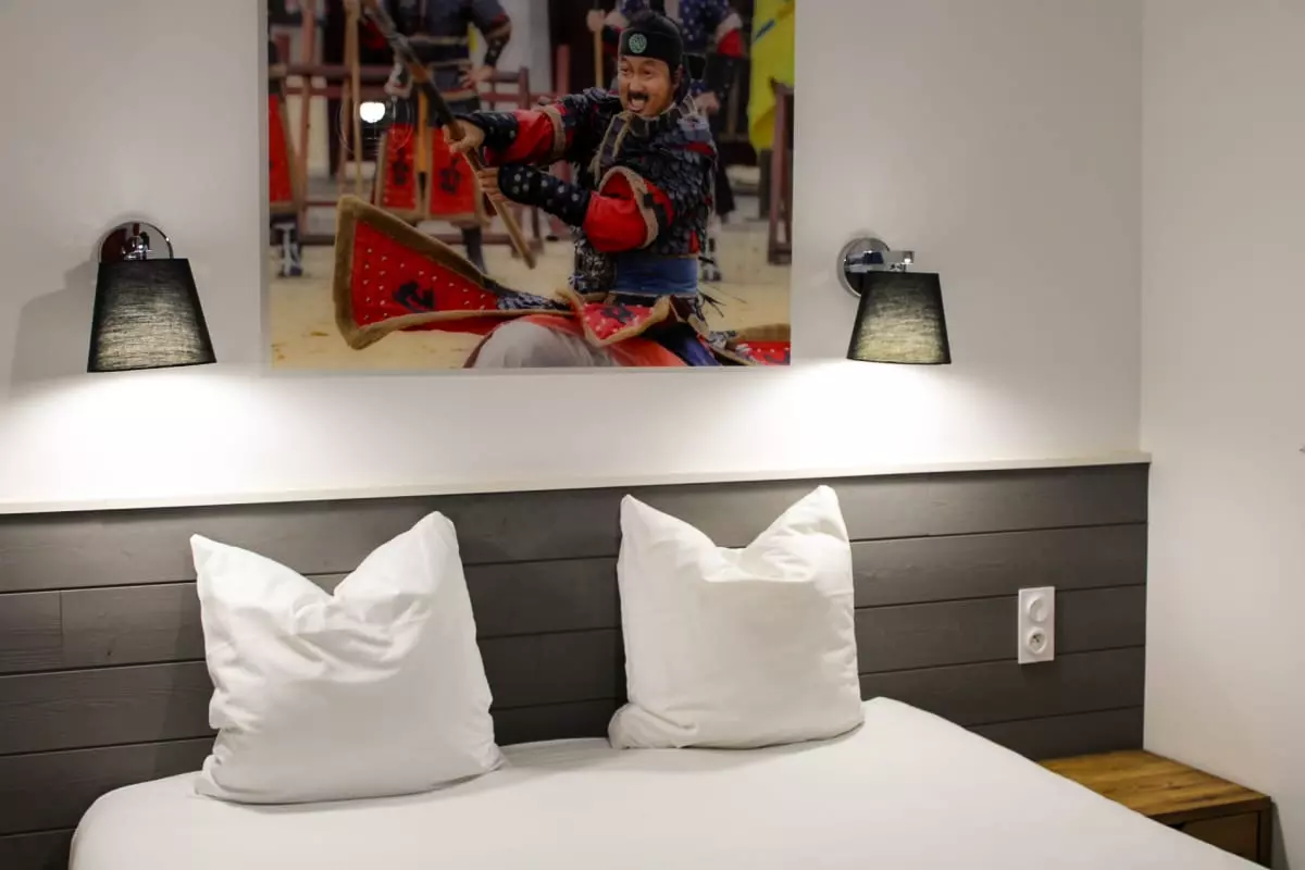 Au cœur de la forêt, cette villa de 50m² décorée sur le thème de la Corée avec sa belle terrasse sans vis à vis et son spa privatif vous accueille pour un séjour relaxant.