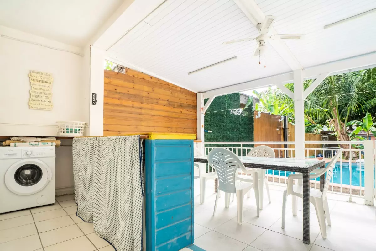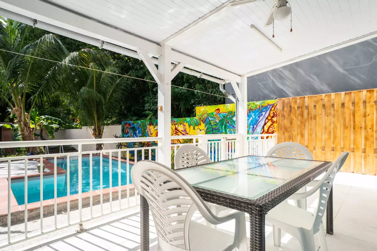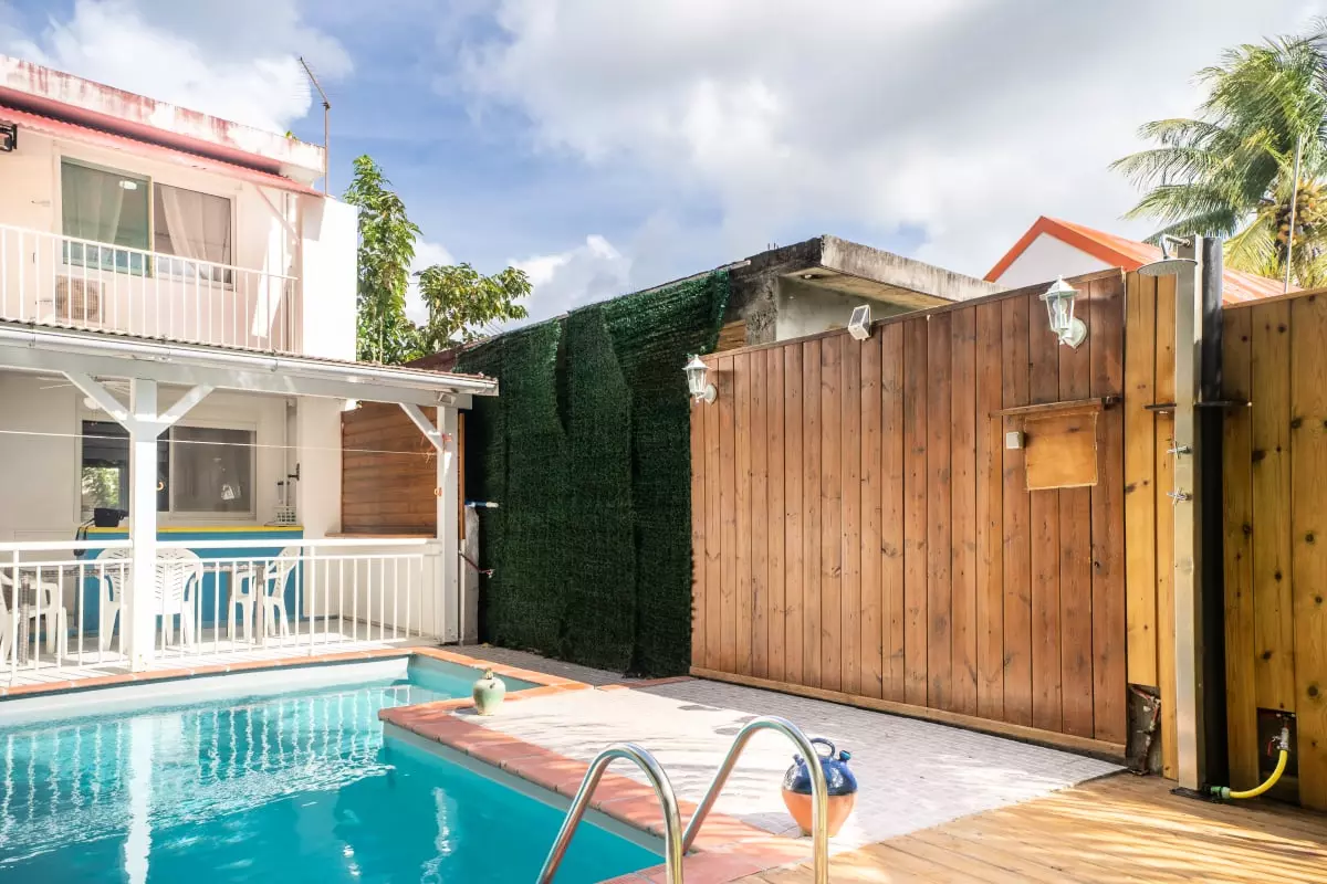 Laissez-vous séduire par le jardin tropical où se niche une piscine privative, parfaite pour des moments de détente sous le soleil des Caraïbes. La terrasse couverte avec un coin bar invite aux apéritifs conviviaux après une journée de découverte. Et pour les surfeurs, c’est l’endroit idéal pour se relaxer après une session exaltante.