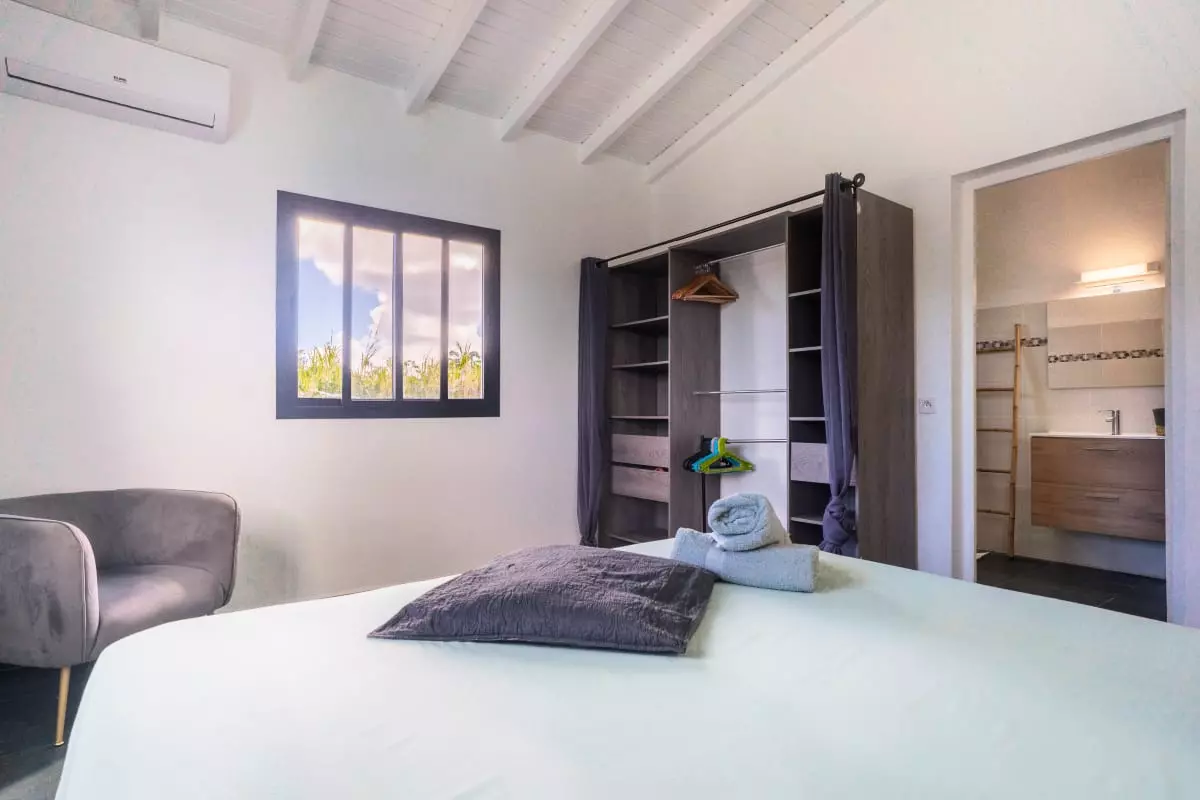 Découvrez l'atmosphère conviviale de ses 3 chambres climatisées, y compris une suite parentale avec salle de bain et WC privatifs. La villa Mai-Tai dispose également d'une salle de bain supplémentaire et de WC séparés, pour le confort de ses 6 occupants maximum. Profitez d'un spacieux séjour lumineux, équipé d'une TV grand écran, parfait pour se détendre après une journée de découverte.