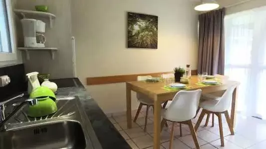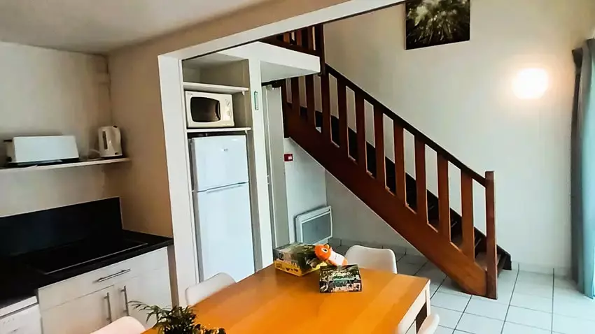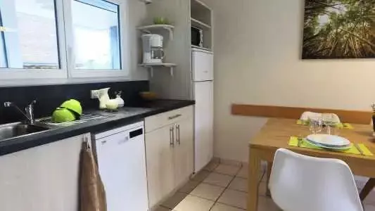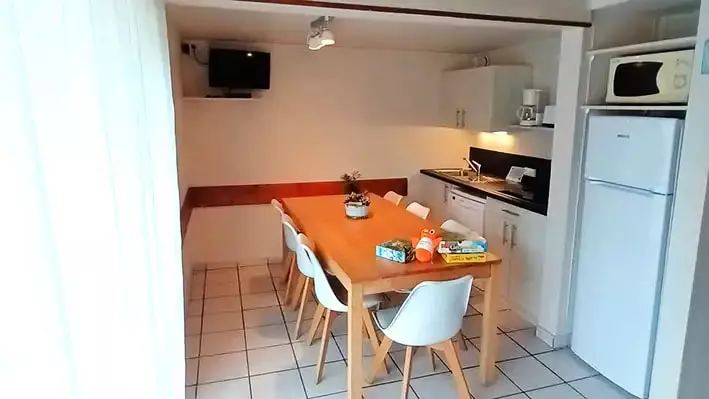 Le gîte est équipé d'un réfrigérateur / congélateur, de plaques de cuisson, d'un micro-ondes et d'un lave-vaisselle.