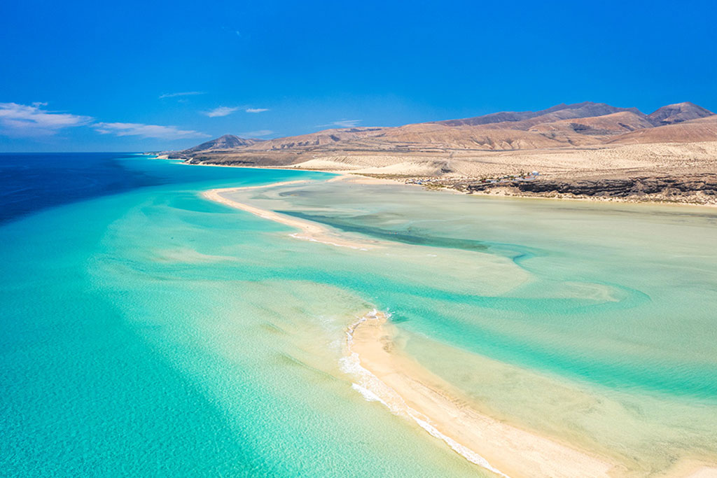 Cap sur Fuerteventura, l'île aux milles couleurs élue Réserve de la Biosphère par l'Unesco en 2009 ! Situé à quelques encablures du Maroc, ce bijou des îles Canaries bénéficie d'un ensoleillement et d'un climat agréable tout au long de l'année. L'île rouge offre près de 150 km de plages aux eaux cristallines. Au cours de vos escapades, vous croiserez sûrement quelques petits villages pittoresques, aux multiples influences, empreints d'une mémoire qu'ils souhaitent préserver. Découvrez le parc naturel des dunes de Corralejo, espace protégé, depuis lequel vous pourrez profiter d'une vue imprenable sur les îles de Lanzarote et de Lobos, au nord de Fuerteventura. Explorez Betancuria, à l'intérieur des terres, la première ville de l'île et ancienne capitale chargée d'histoire et c'est au sud de l'île, que s'illustrent les paysages mythiques de volcans aux couleurs rouges ocre de l'île qui vous laisseront sans voix !