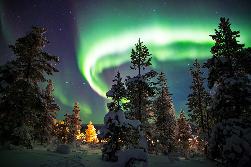 À la tombée de la nuit, l´aventure commence ! Montez à bord d’un mini-van et laissez les lumières de Levi s’évanouir... Peu à peu, le silence de la Laponie s’installe pour créer une ambiance magique… Vous roulerez vers un lieu reculé, préservé de toute lumière artificielle, où l’obscurité devient une toile parfaite pour les merveilles du ciel. Une fois arrivés, le froid sec de la nuit sera vite oublié grâce à un feu de camp crépitant autour duquel vous prendrez place. Des snacks typiques seront préparés et servis avec des boissons chaudes. Le guide vous expliquera alors comment se forment les aurores boréales. Les yeux tournés vers le ciel, vous patienterez jusqu’au moment où vous aurez la chance d’observer une lueur dansante s’élever dans le ciel. L’aurore boréale commencera alors son ballet.