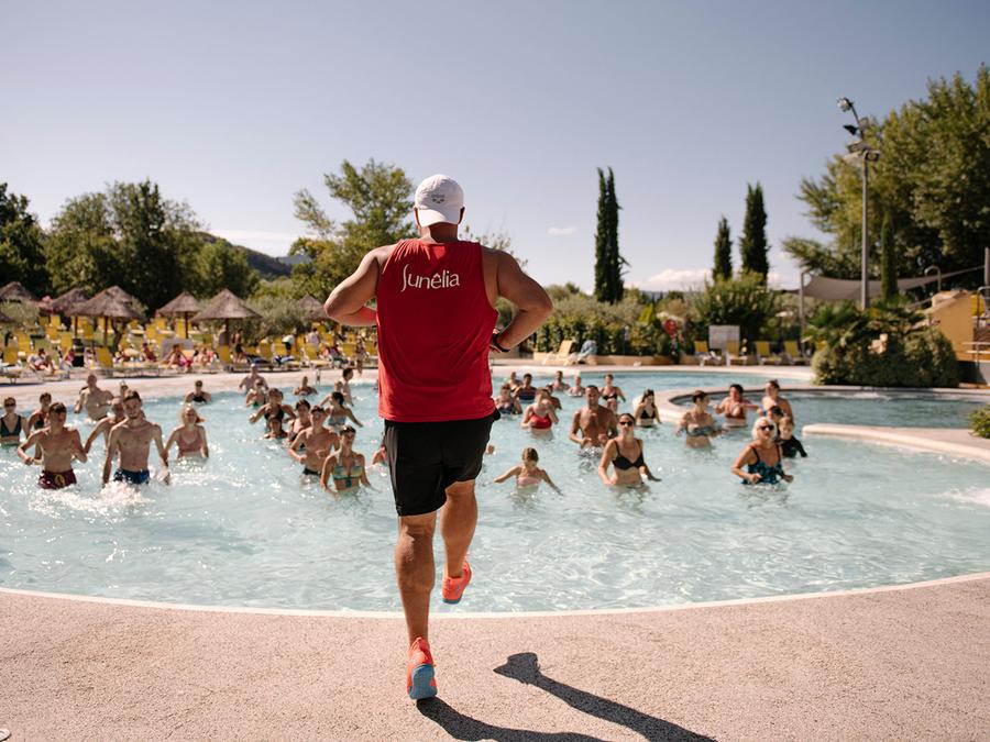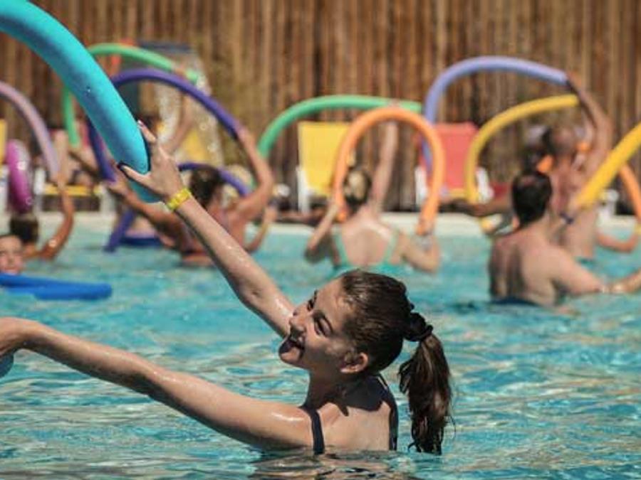 - Description : En haute saison des activités aquatiques sont organisées : aquagym, jeux, tournois, waterpolo, soirée piscine nocturne...