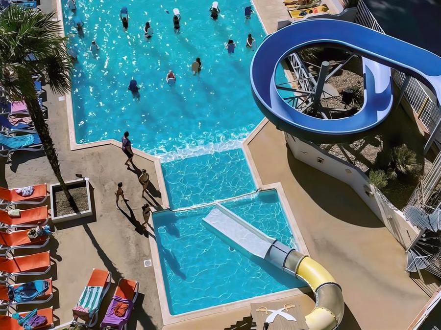 - Description : Espace aquatique extérieur chauffé : espace de 148m² : 1 pataugeoire, 2 toboggans. Ouvert de mai à septembre (selon conditions climatiques).