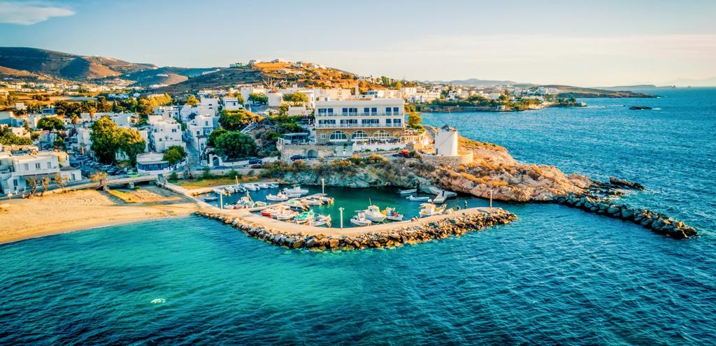 Petits déjeuners. Séjour libre pour découvrir l’île de Paros. Dans l’Antiquité, Paros était célèbre pour ses carrières de marbre blanc, dit « Parien » d’où le nom de Paros… Certains des chefs-d’œuvre de la sculpture grecque antique ont d’ailleurs été réalisés avec ce matériau translucide d’un blanc pur comme la Vénus de Milo ou la Victoire de Samothrace… Aujourd’hui, l’île vous invite à découvrir sa beauté naturelle, ses 120 km de côtes et ses plages aux eaux cristallines, ses sentiers byzantins reliant les villages traditionnels… Parikia, la capitale, est une jolie ville qui a su conservé son charme traditionnel, avec ses petites maisons blanches, ses moulins à vent traditionnels, ses belles cafétérias en bord de mer et ses rues pavées et très animées. Rendez-vous au musée archéologique et au monastère de Panagia Ekatontapiliani " l'église aux cent portes ". Si vous préférez la tranquillité, optez pour les villages de Lefkes et Marpissa, vous verrez ainsi deux visages de l’île. À proximité de Parikia, prenez du bon temps sur les plages de Livadia, Marchello ou Kolympithres avec de petites criques de sable qui se succèdent. Si vous y arrivez tôt, vous aurez peut-être la chance d'avoir votre propre petite baie privée. Pour les amateurs de sports nautiques Golden Beach est « The Place to Be ». Vous pourrez aussi visiter les ruines d'Asklepieion et l'ancien temple d'Apollon pythique. Nuit à l’hôtel.