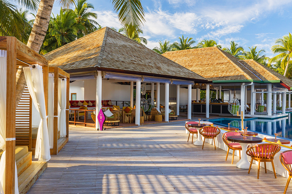 - Tout au long de la journée, le bar-salon « Veli Bar and Lounge» au bord de la piscine vous invite à vous relaxer dans une ambiance chaleureuse, avec des spectacles vivants et dynamiques. Situé au cœur de l’île, c’est l’endroit idéal pour se détendre sous les palmiers qui se balancent au gré du vent.