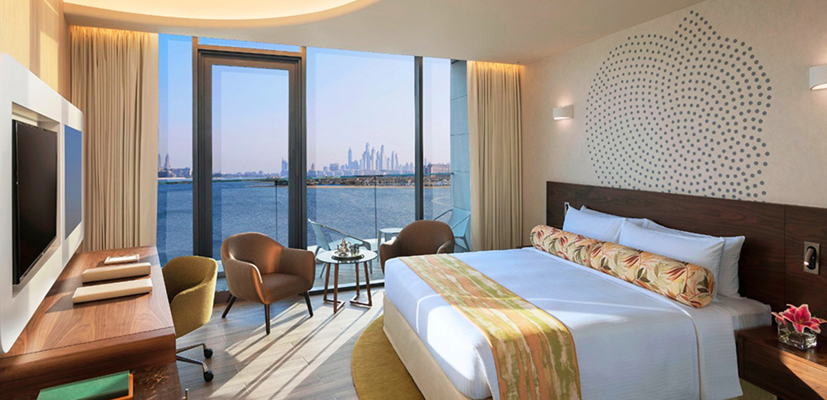 L’hôtel The Retreat Palm Dubai MGallery by Sofitel 5* dispose de 255 chambres et suites modernes et spacieuses, décorées dans des tons naturels pour offrir une ambiance apaisante et chaleureuse. Les teintes neutres, inspirées par la nature, favorisent le calme et la détente, en parfaite harmonie avec la philosophie de bien-être de l’hôtel.